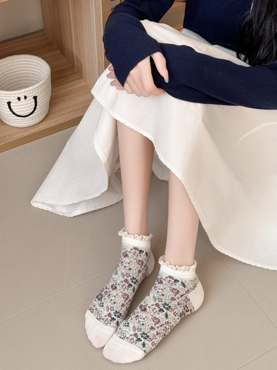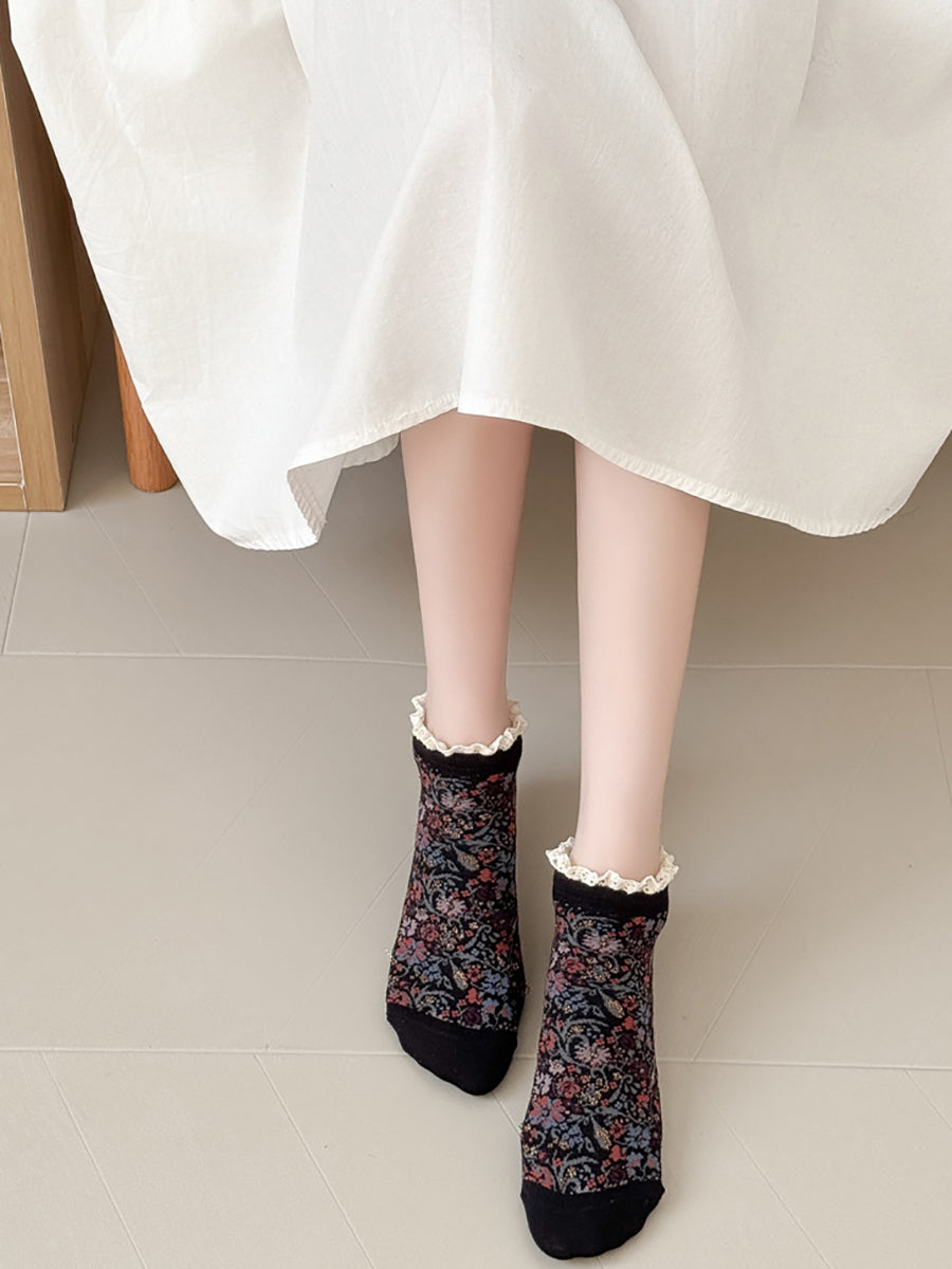 5 Pairs Women Artsy Floral Lace Spliced Socks