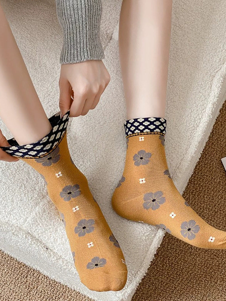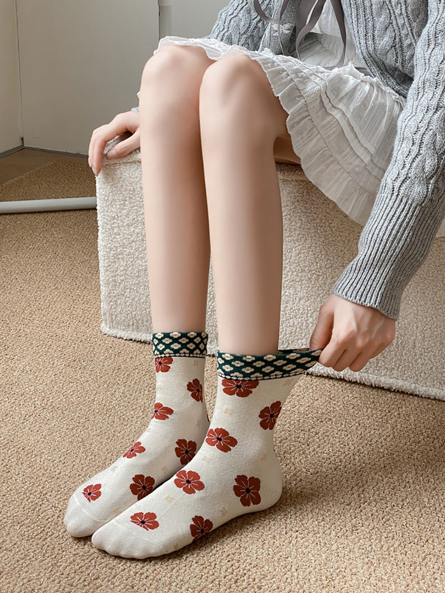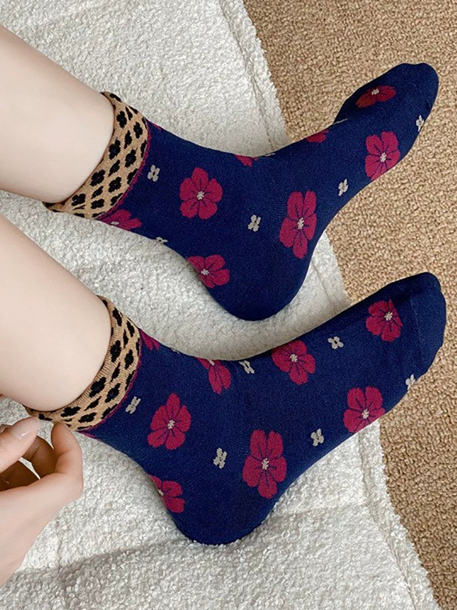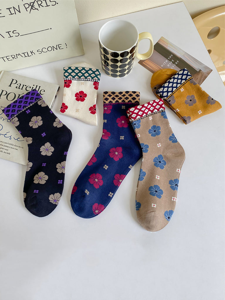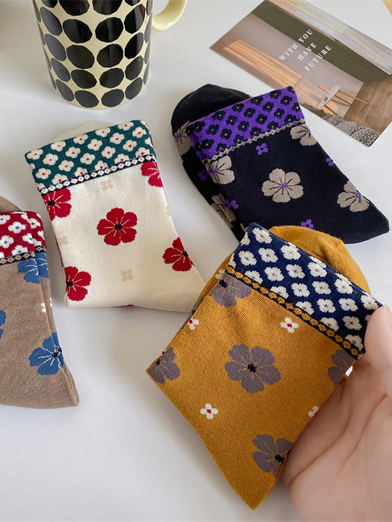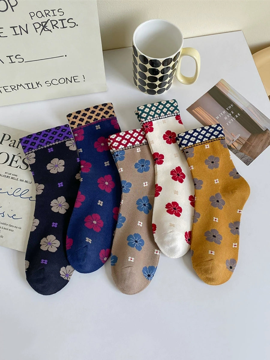 5 Pairs Women Artsy Flower Cotton Socks
