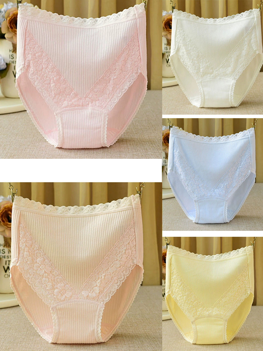 5 Pieces Women Artsy Lace High Waist Underwear