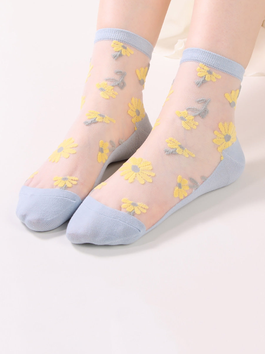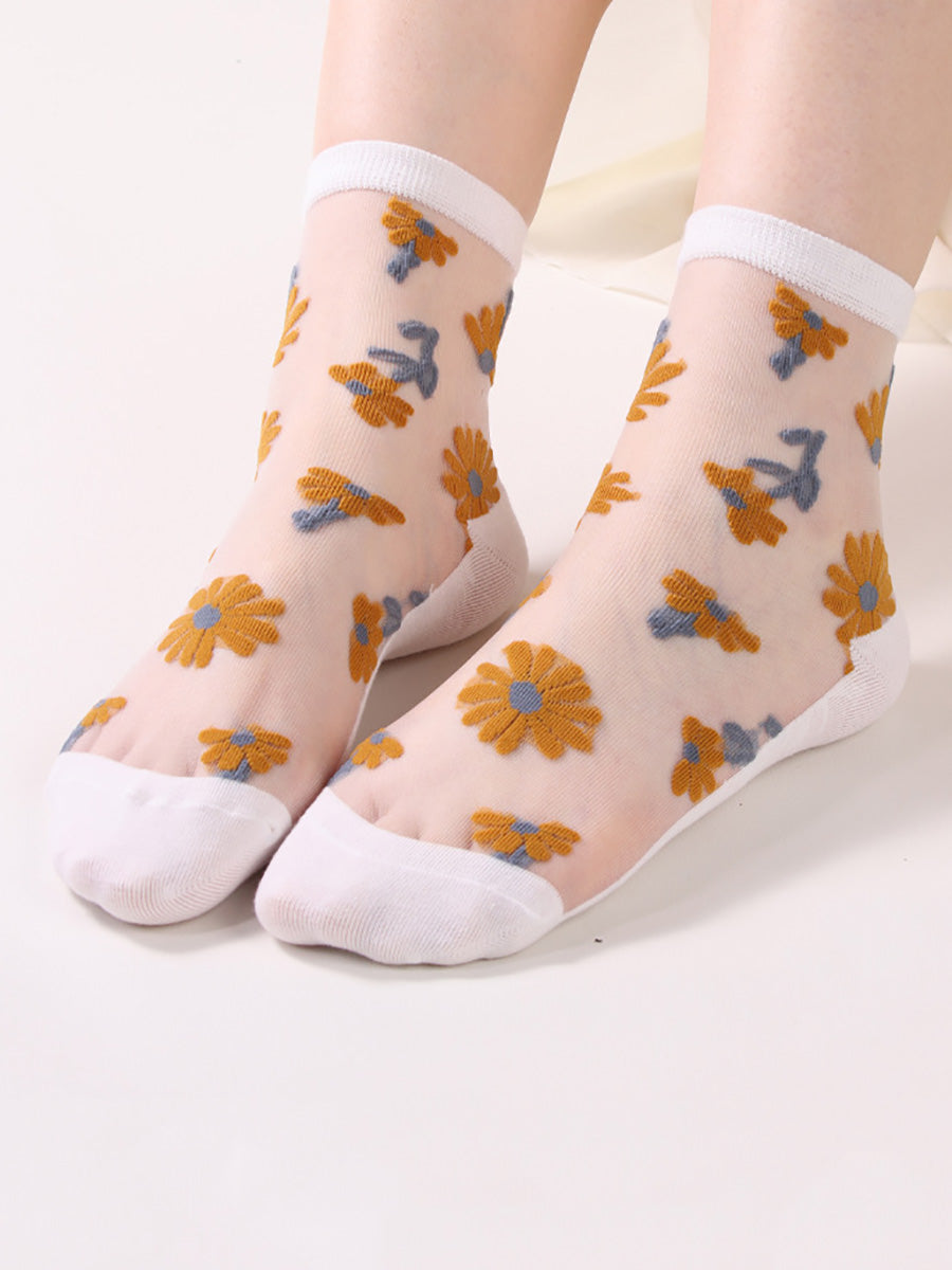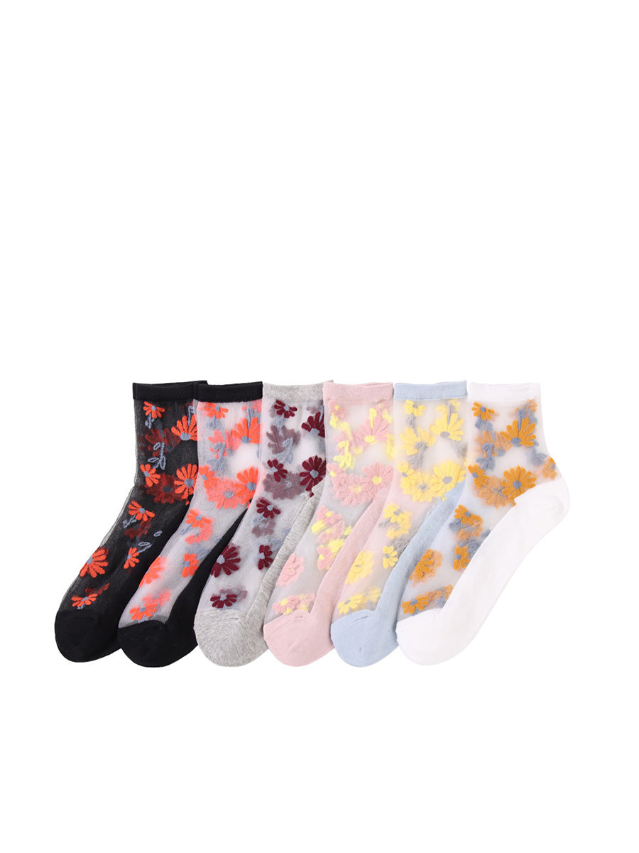 6 Pairs Women Summer Casual Flower Thin Socks