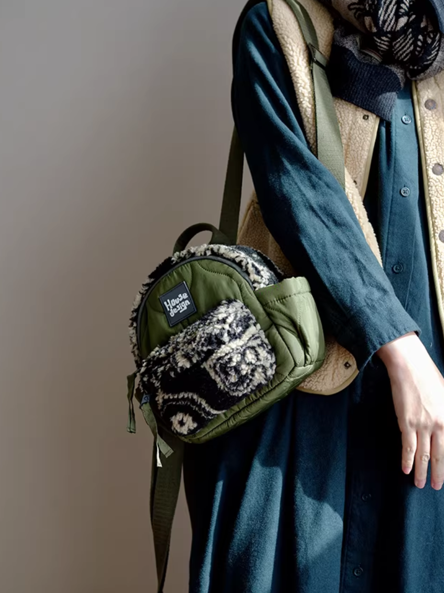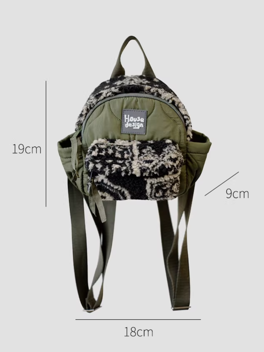 Artistic Green Fluffy Floral Spliced Mini Backpack