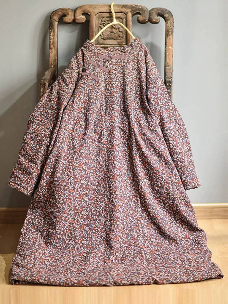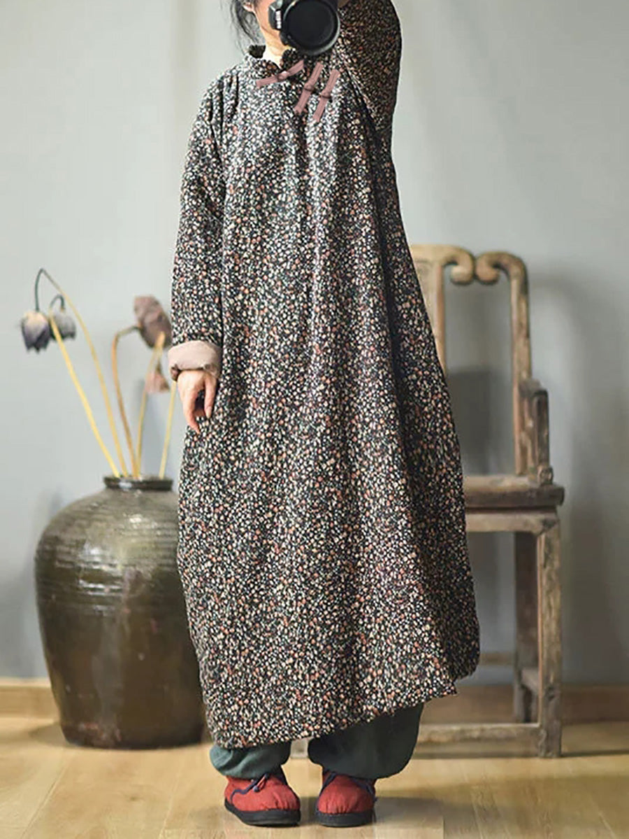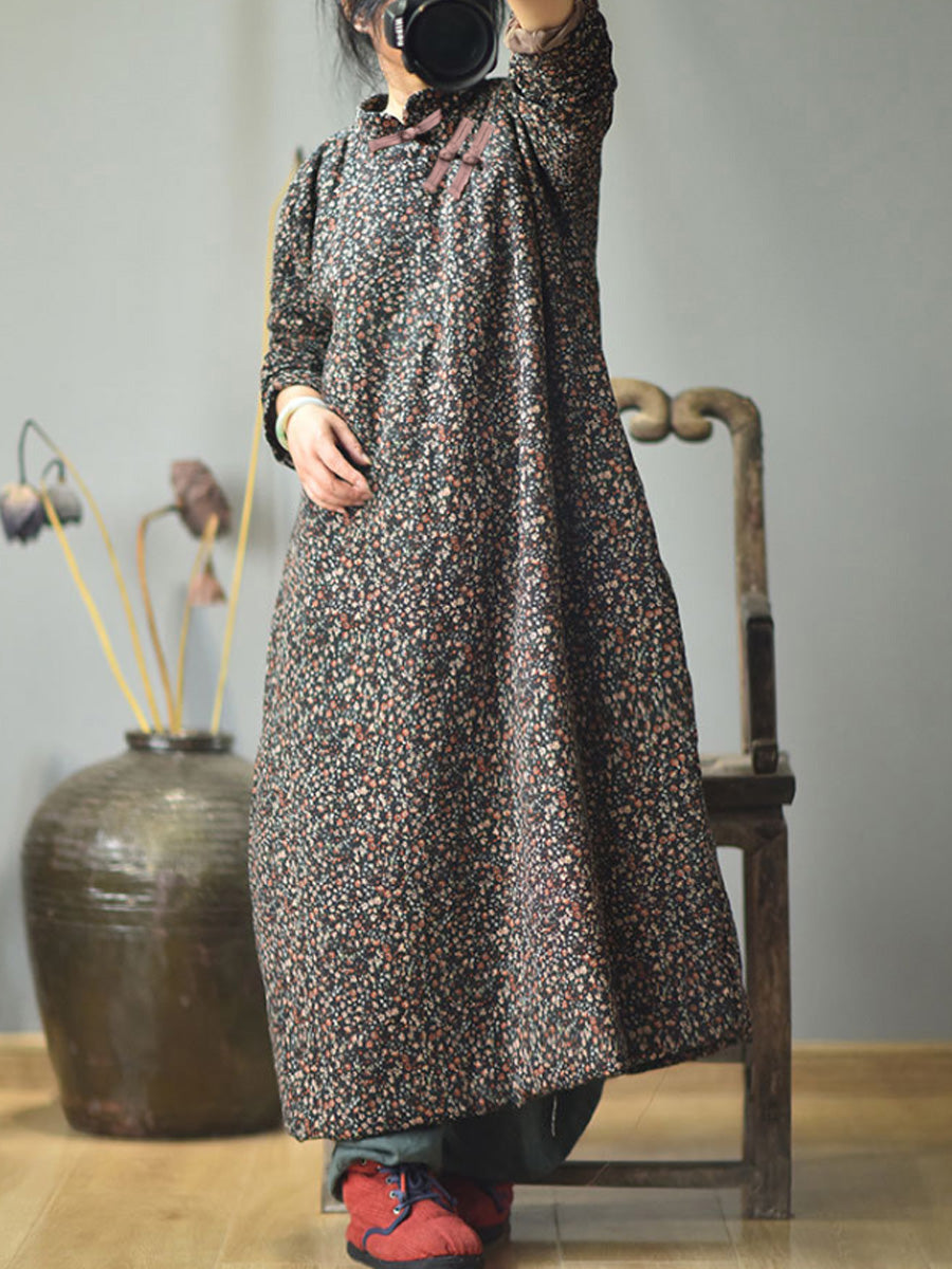 Plus Size - Autumn Women Loose Floral Cotton Dress
