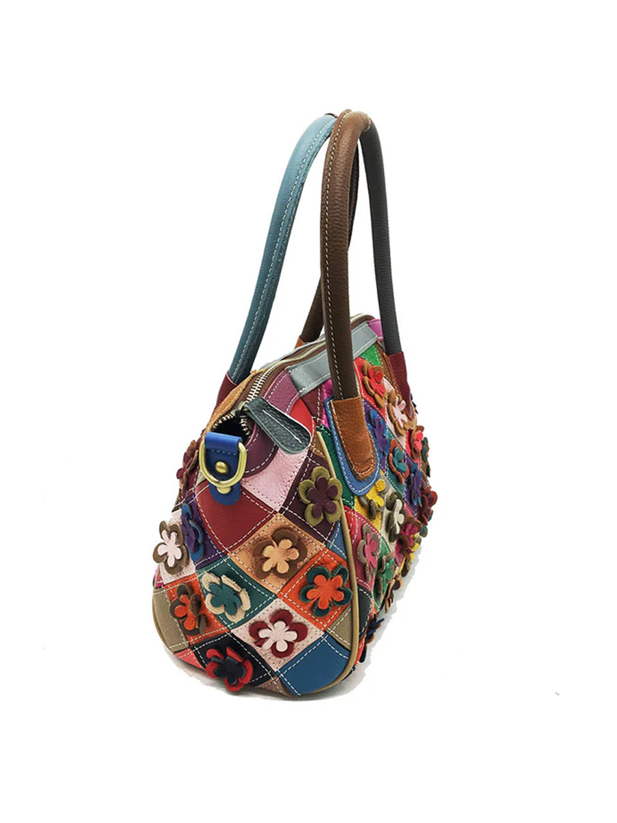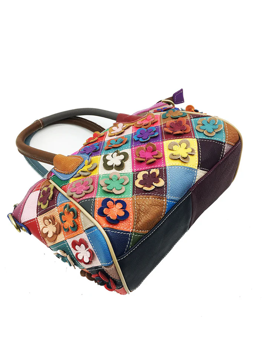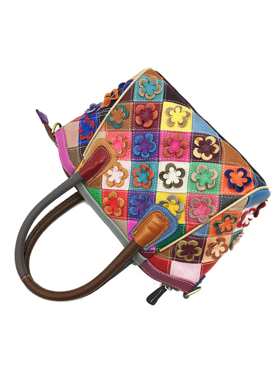 Vintage Multicolor Color-blocking Floral Patchwork Handbag