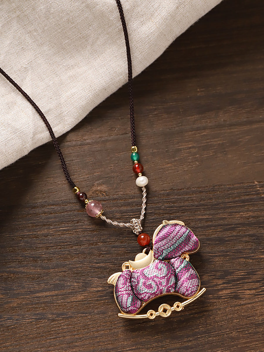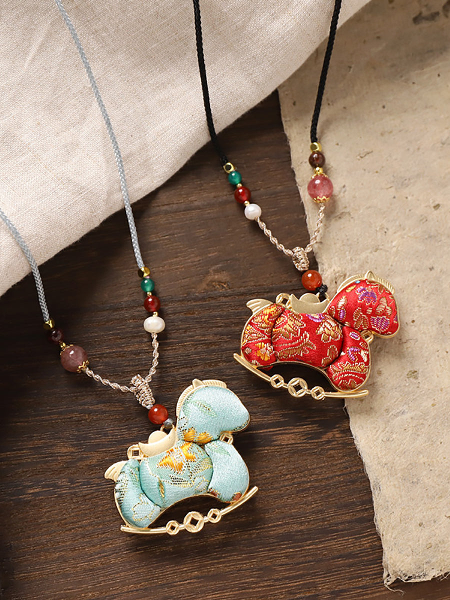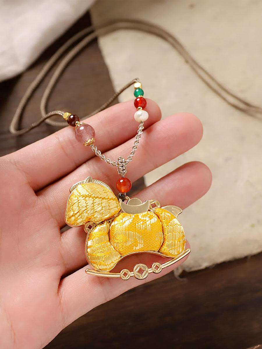 Ethnic Double-sided Brocade Horse Pendant Long Necklace