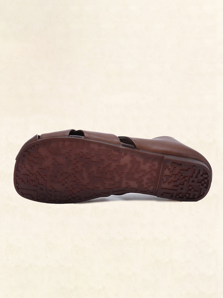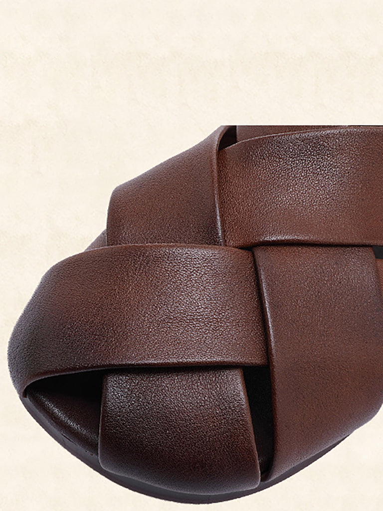 Spring Summer Solid Color Leather Round Toe Flat Shoes