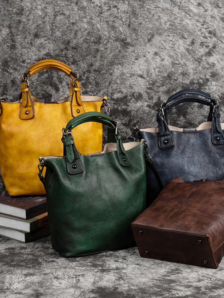 Vintage Solid Genuine Leather Handbag For Women