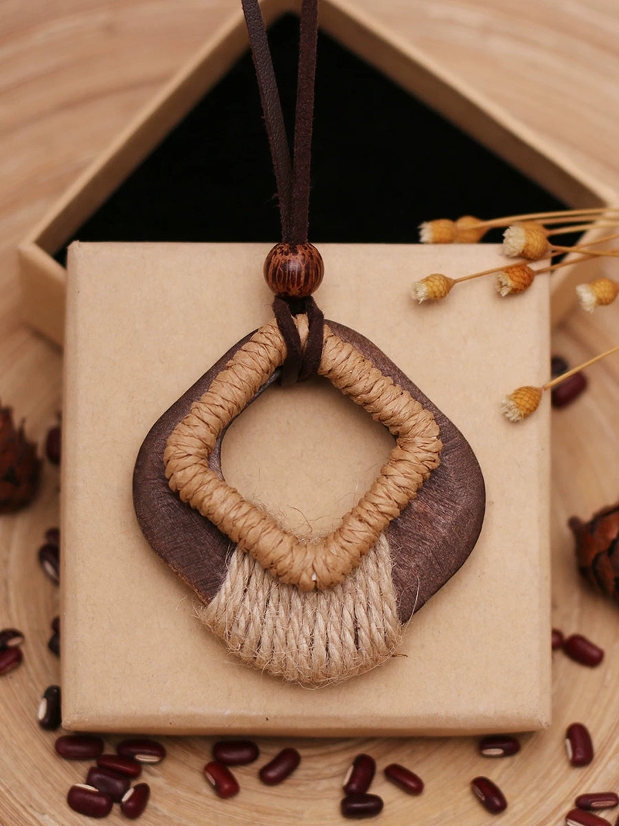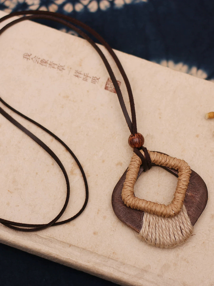 Vintage Wooden Hemp Rope Weave Sweater Necklace