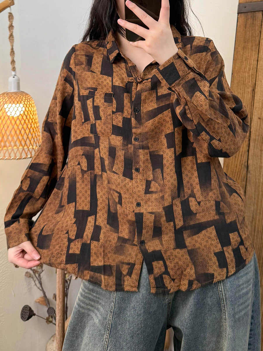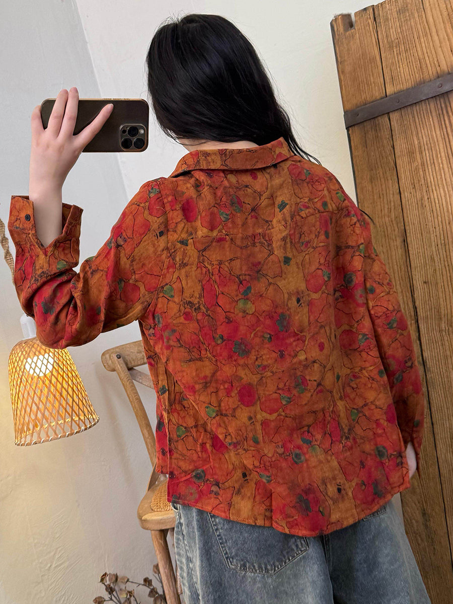 Women Artsy Autumn Flower Buttoned Shirt
