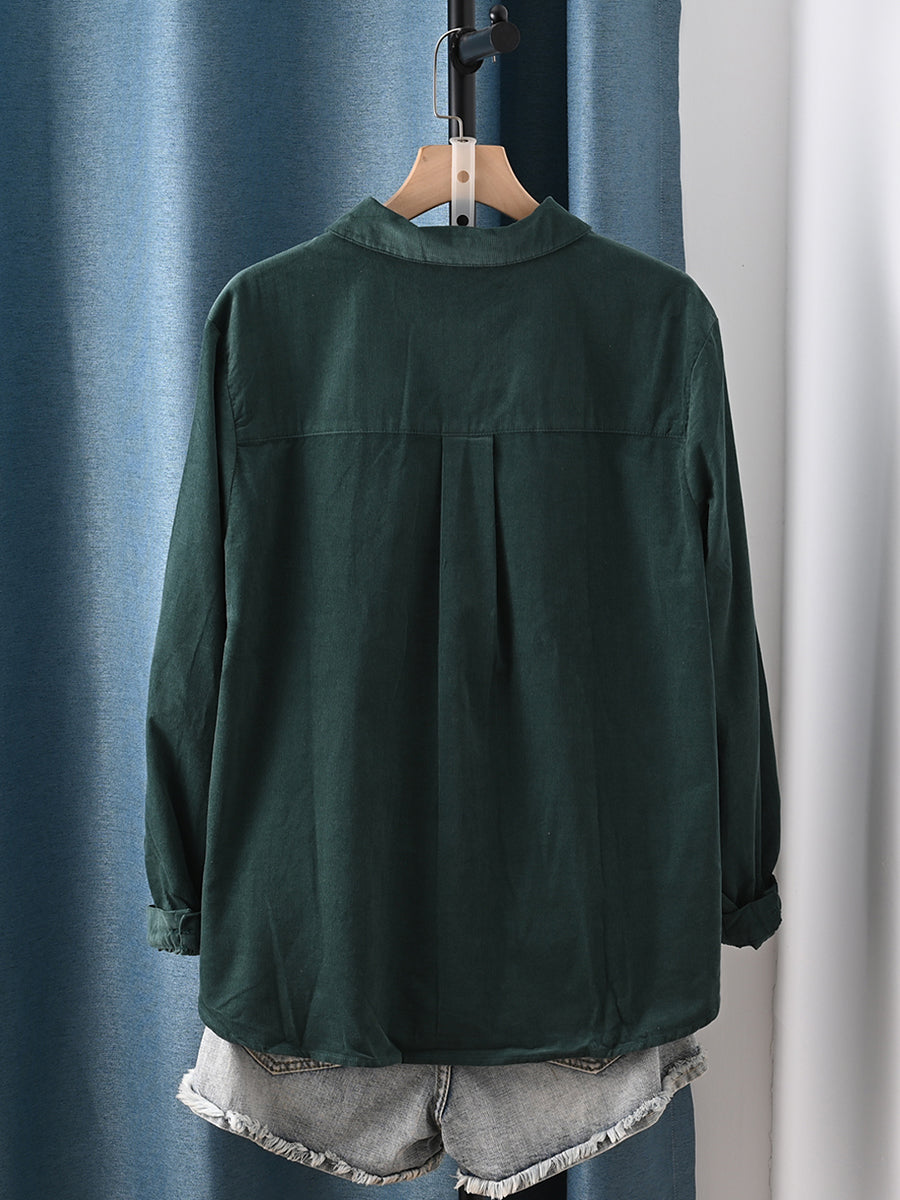 Women Artsy Colorful Button Corduroy Shirt