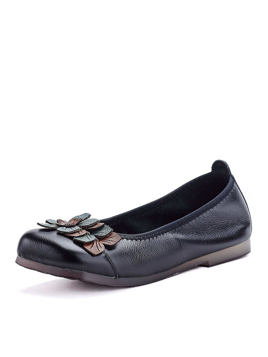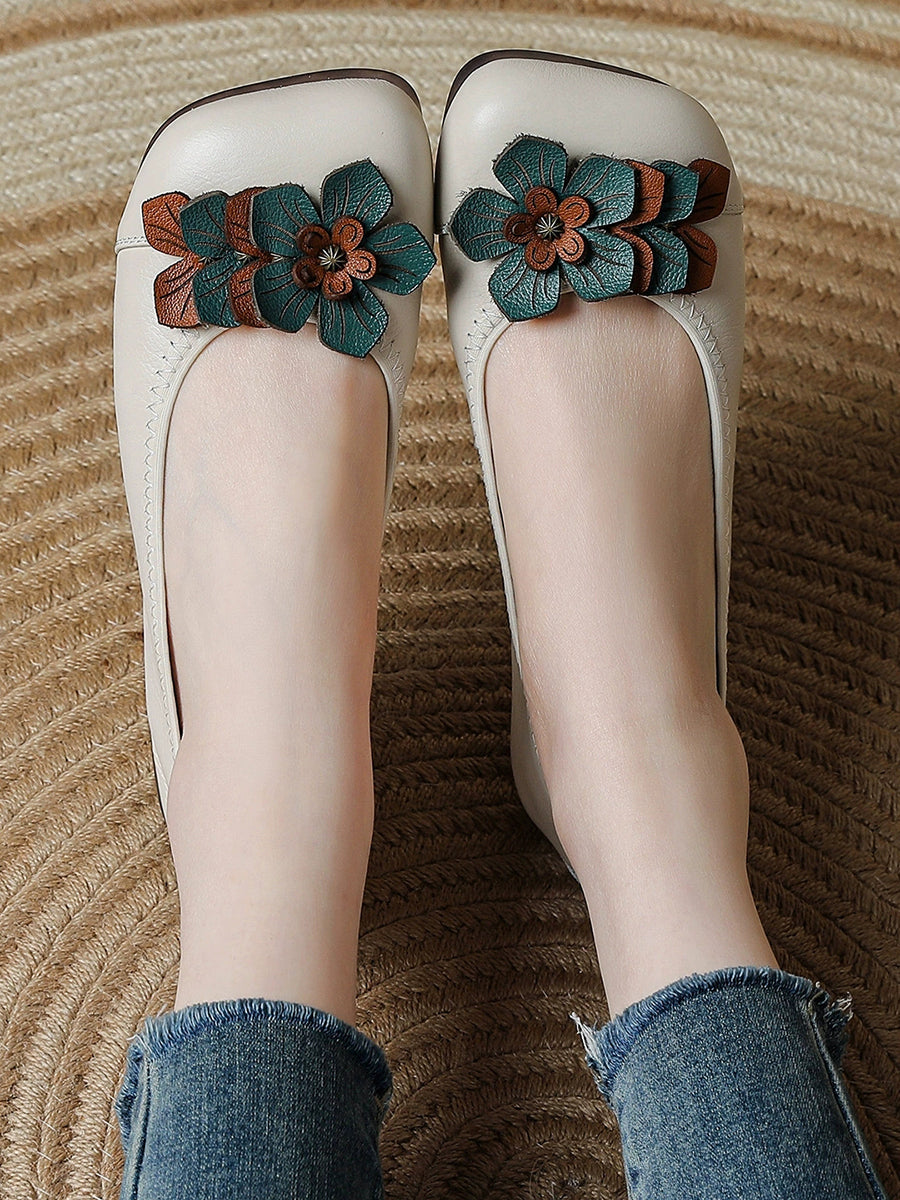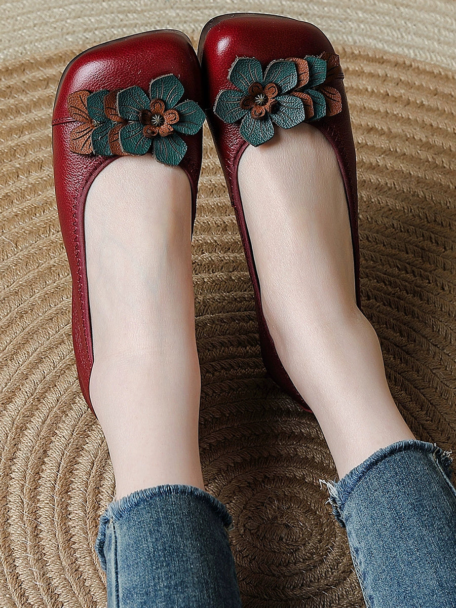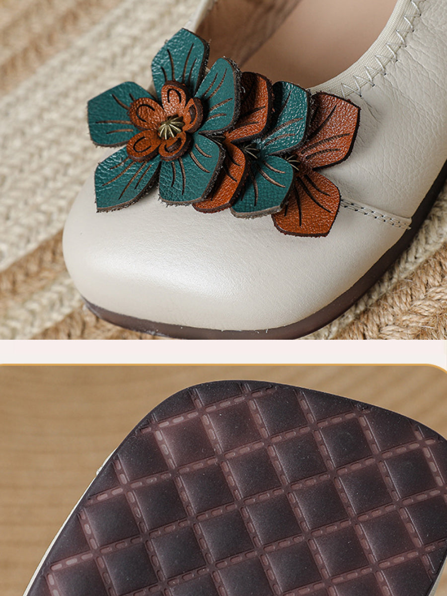 Women Artsy Flower Spliced Genuine Leather Shoes
