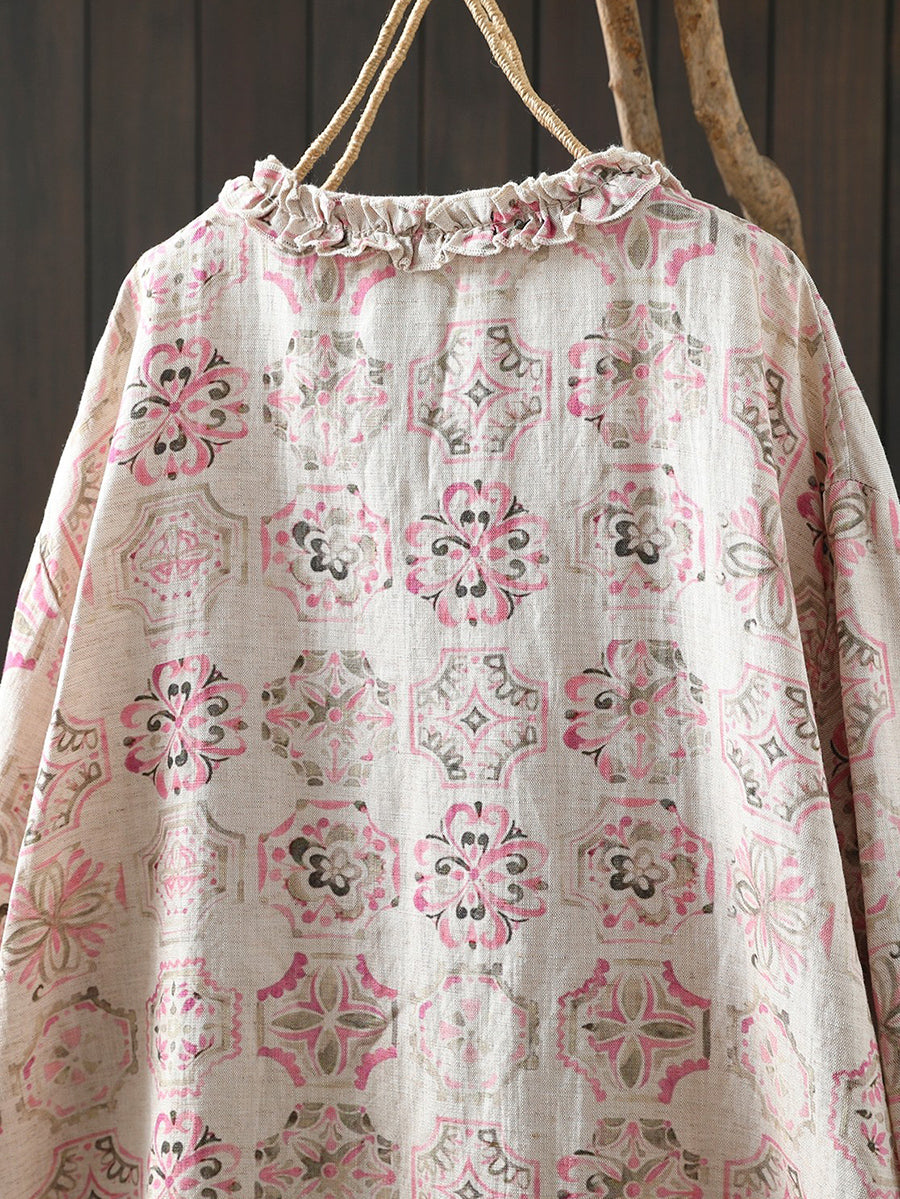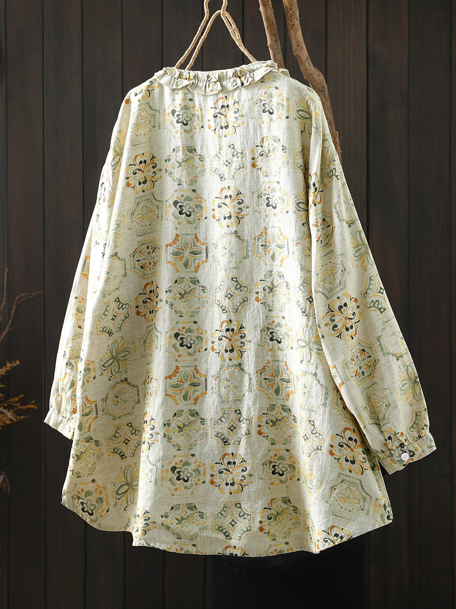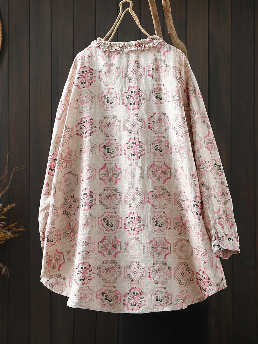 Women Artsy Spring Flower 100%Linen Blouse
