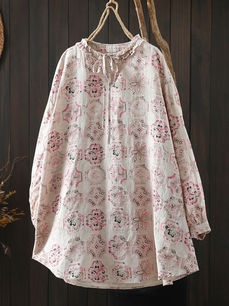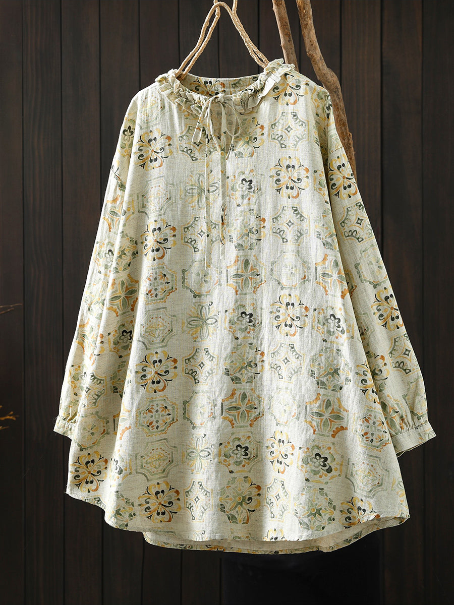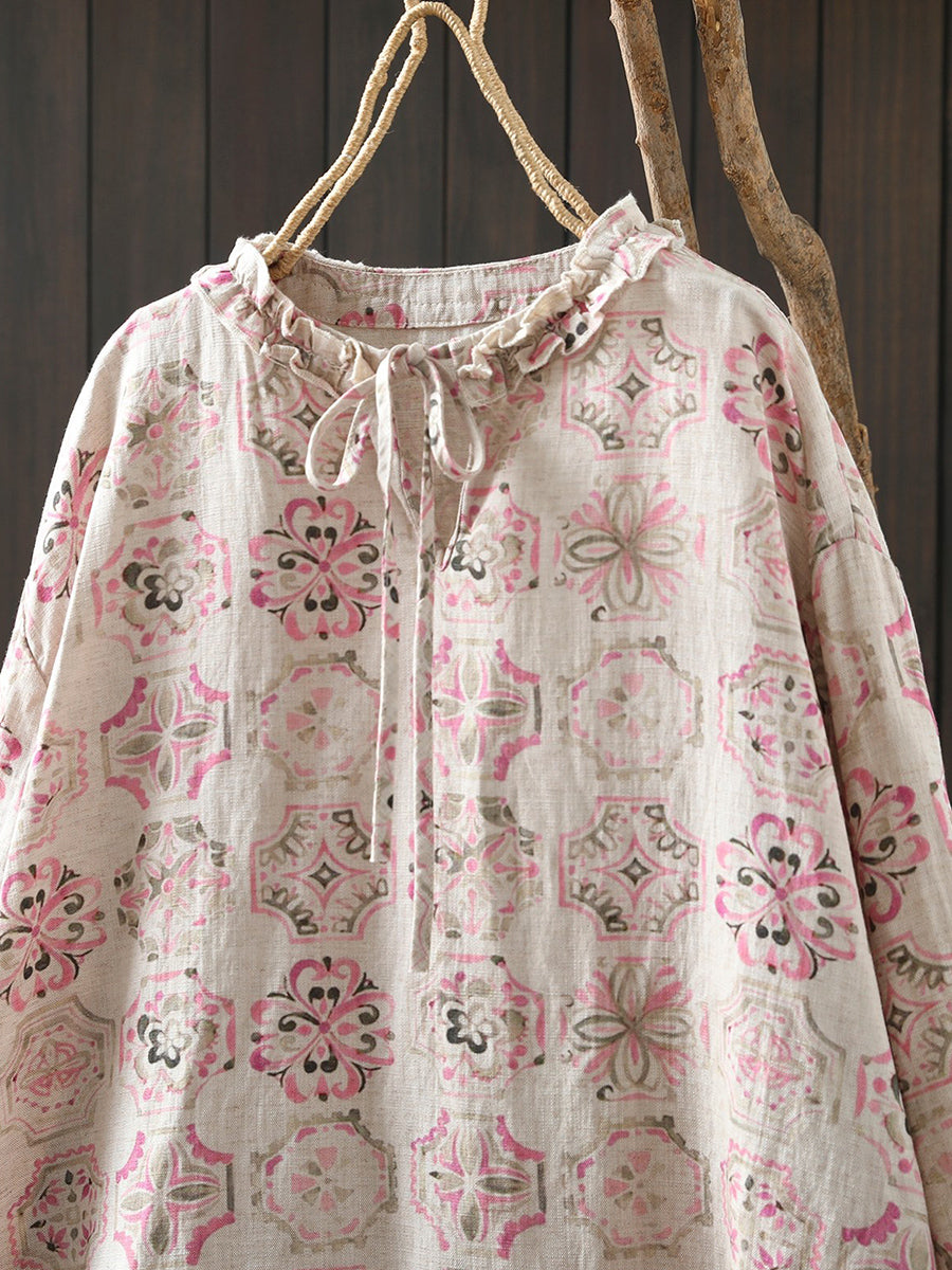 Women Artsy Spring Flower 100%Linen Blouse
