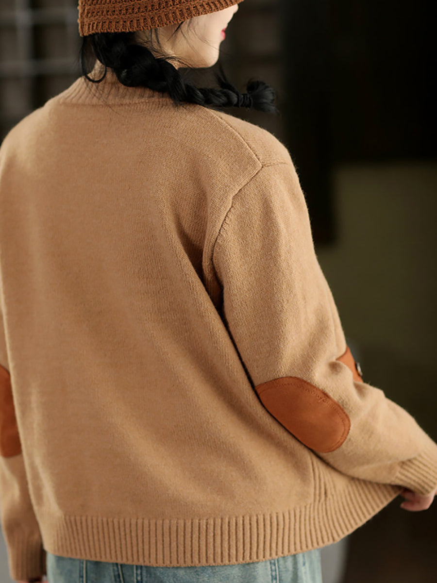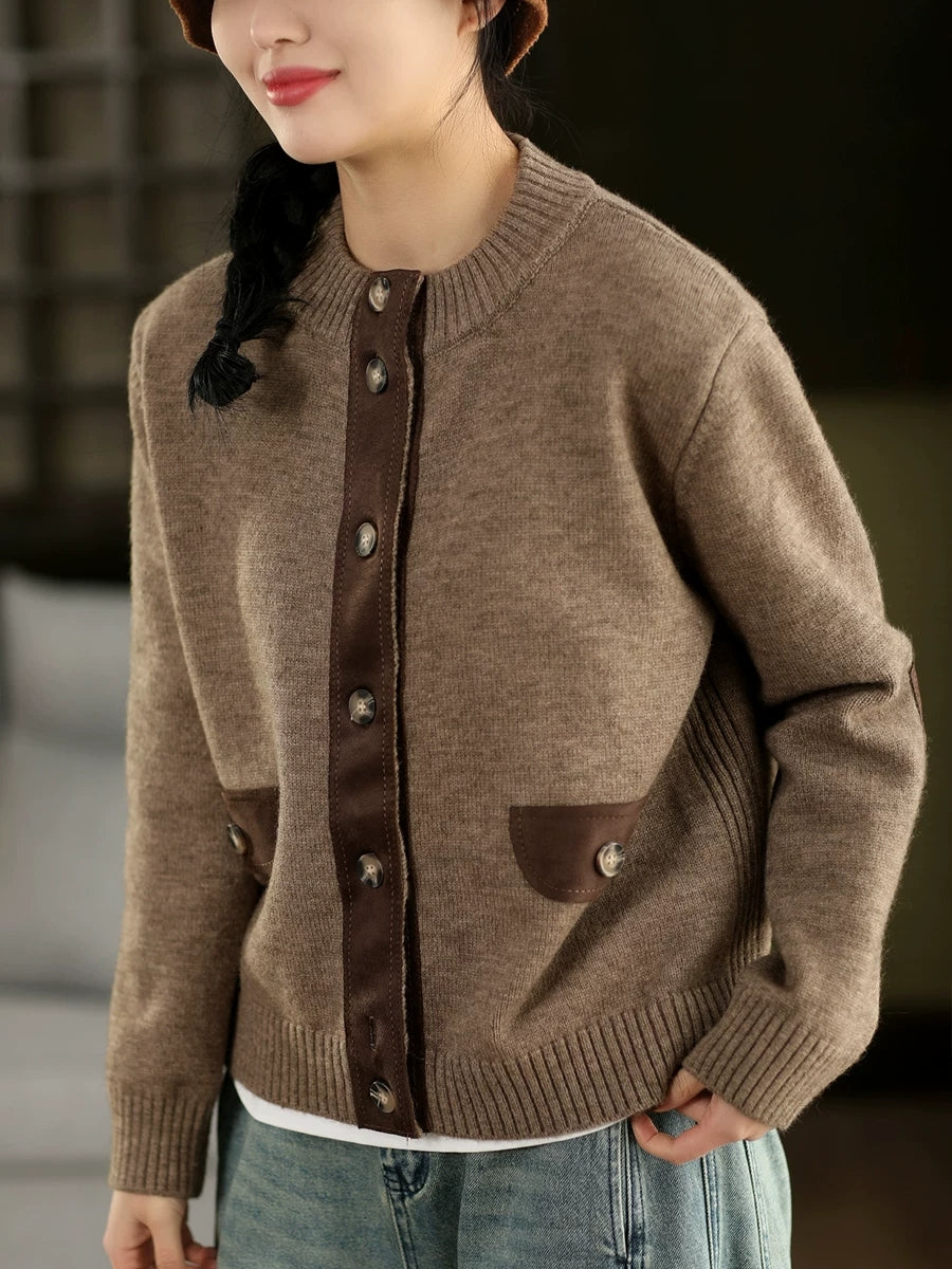 Women Artsy Spring Spliced O-Neck Cardigan Sweater
