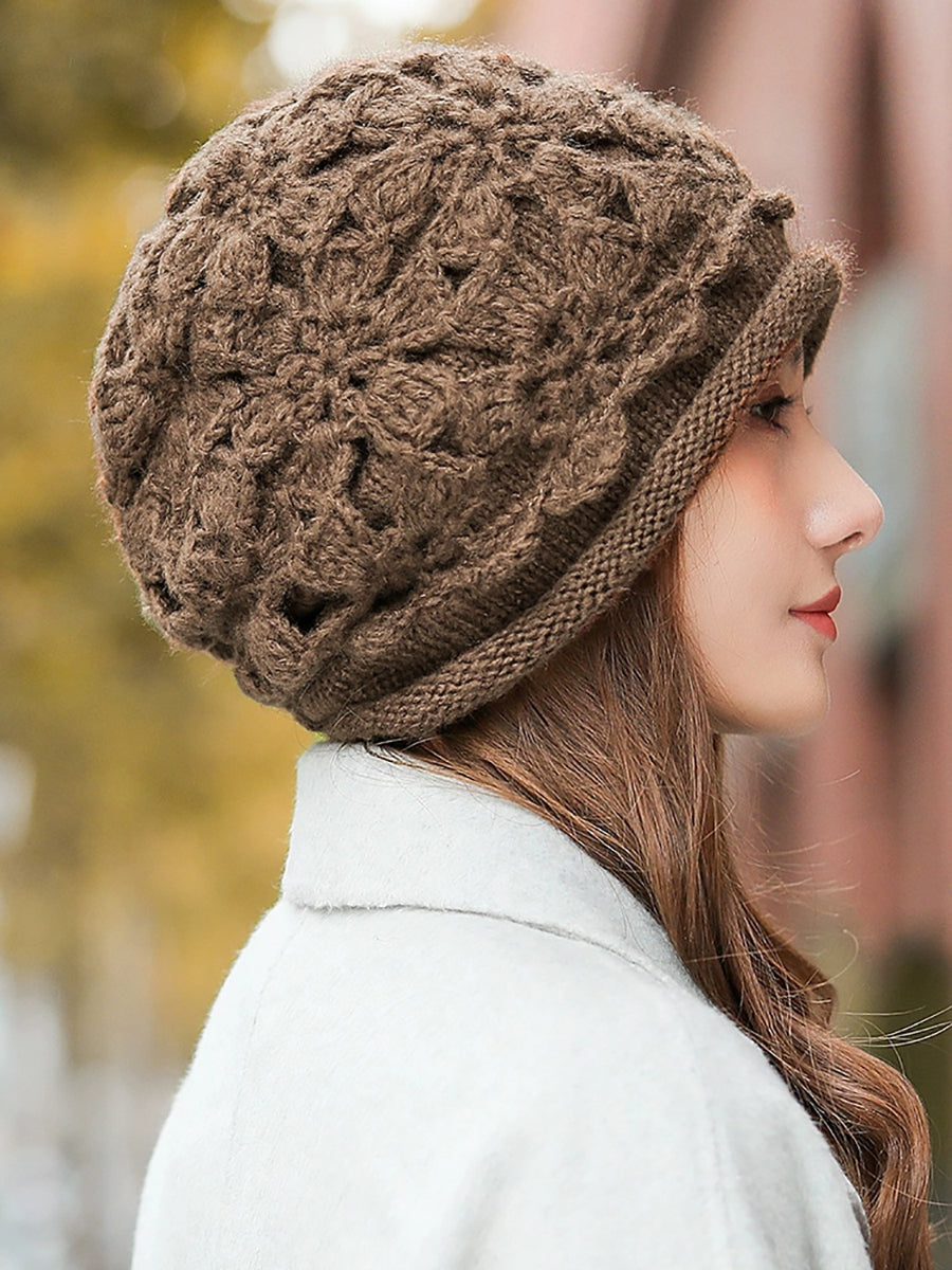 Women Artsy Winter Flower Knitted Hat