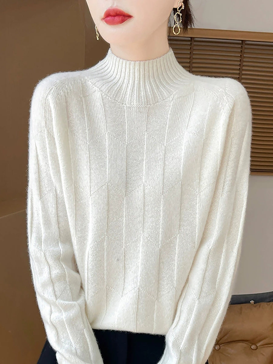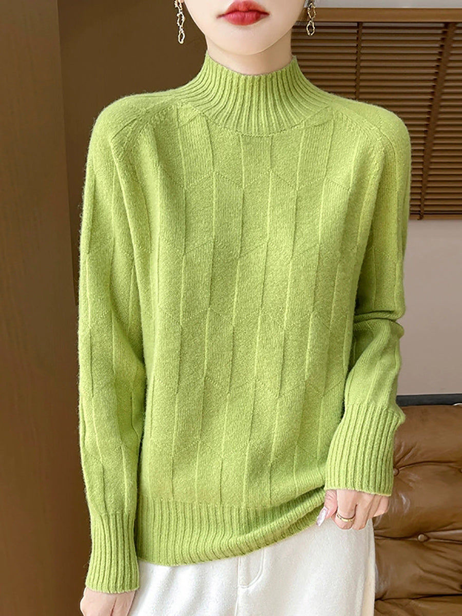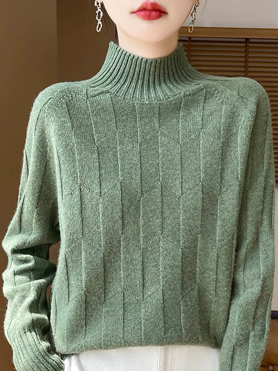 Women Artsy Winter Pure Color Half-Turtleneck Sweater