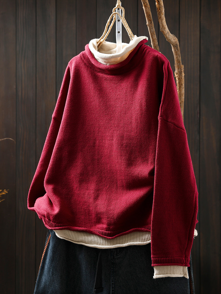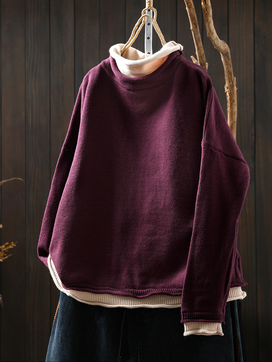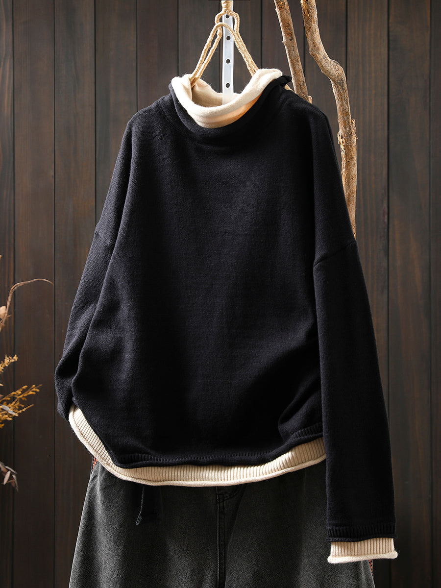 Women Autumn Artsy Fake Two Turtleneck Sweater