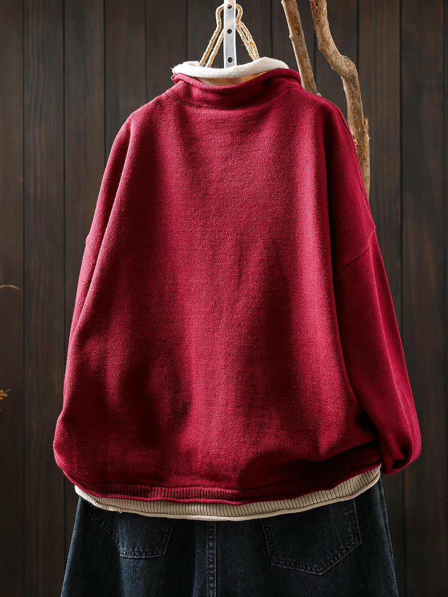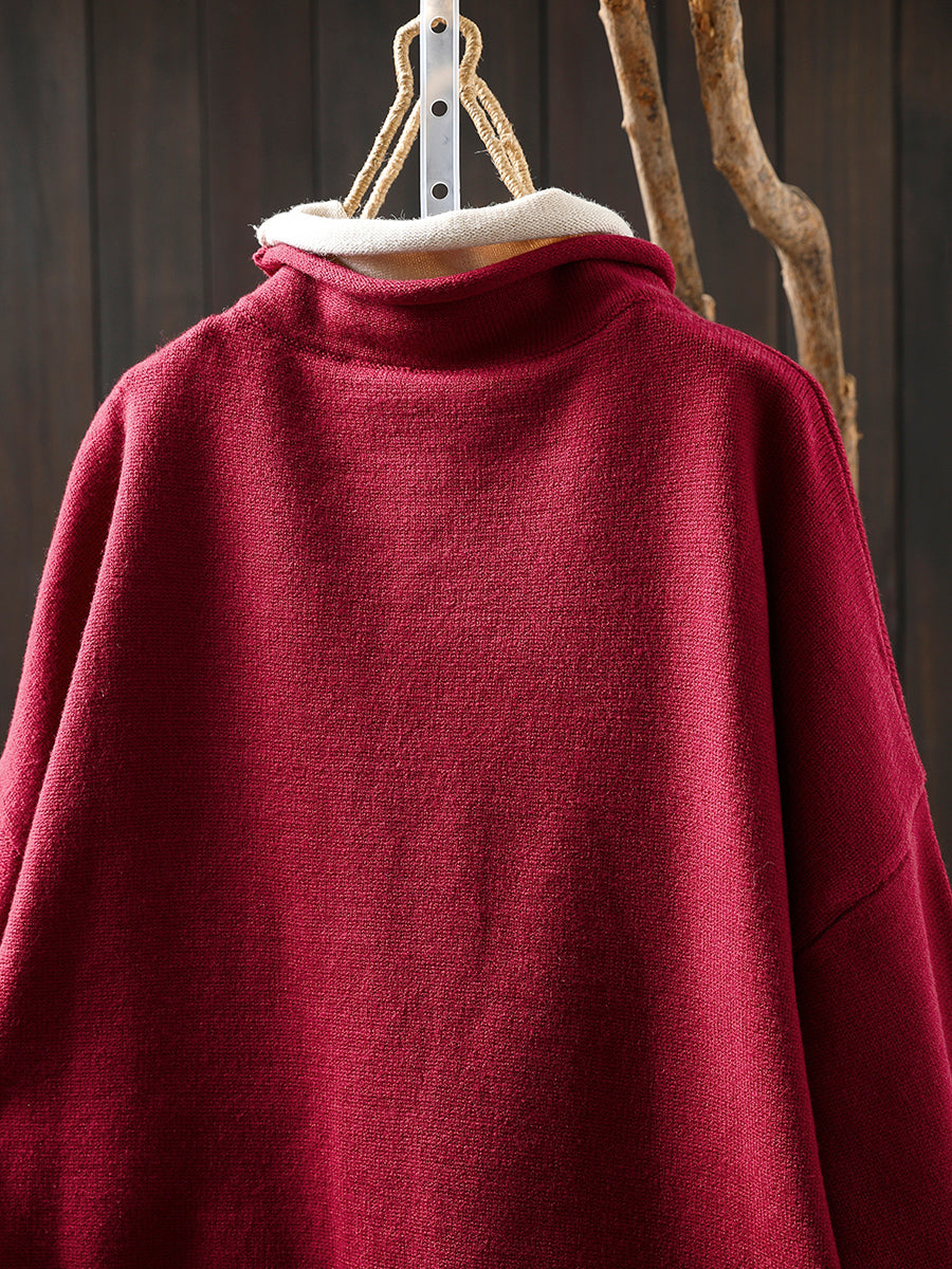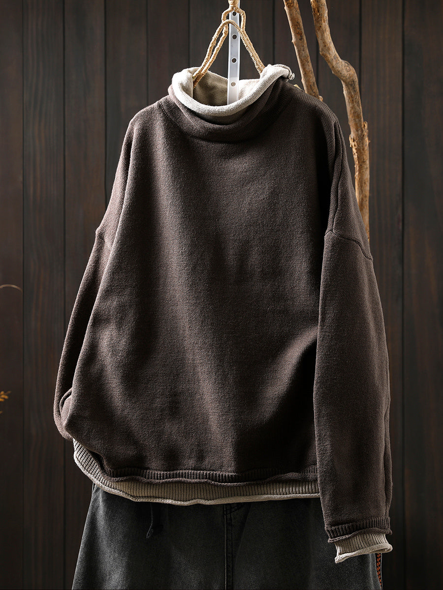 Women Autumn Artsy Fake Two Turtleneck Sweater