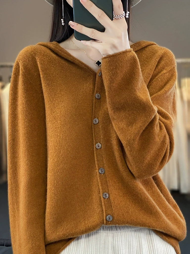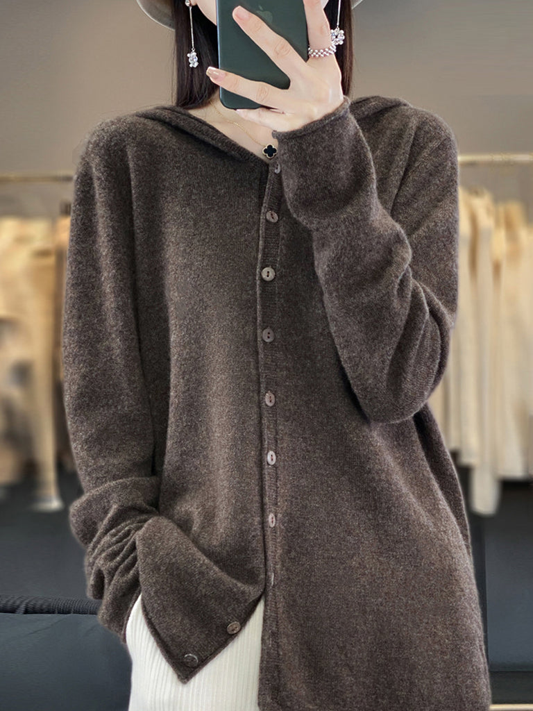 Women Autumn Casual Knitted Wool Hooded Sweater Coat