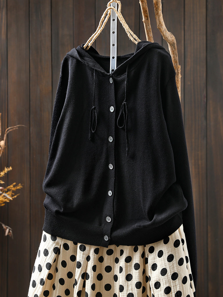 Women Autumn Casual Pure Color Hooded Knitted Blouse