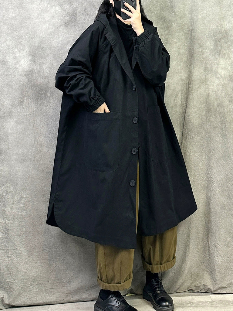 Plus Size Women Autumn Pure Color Long Cotton Hooded Coat