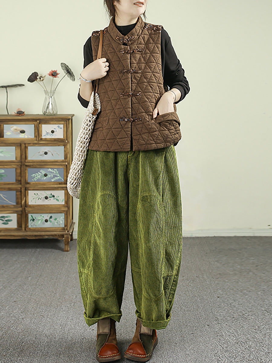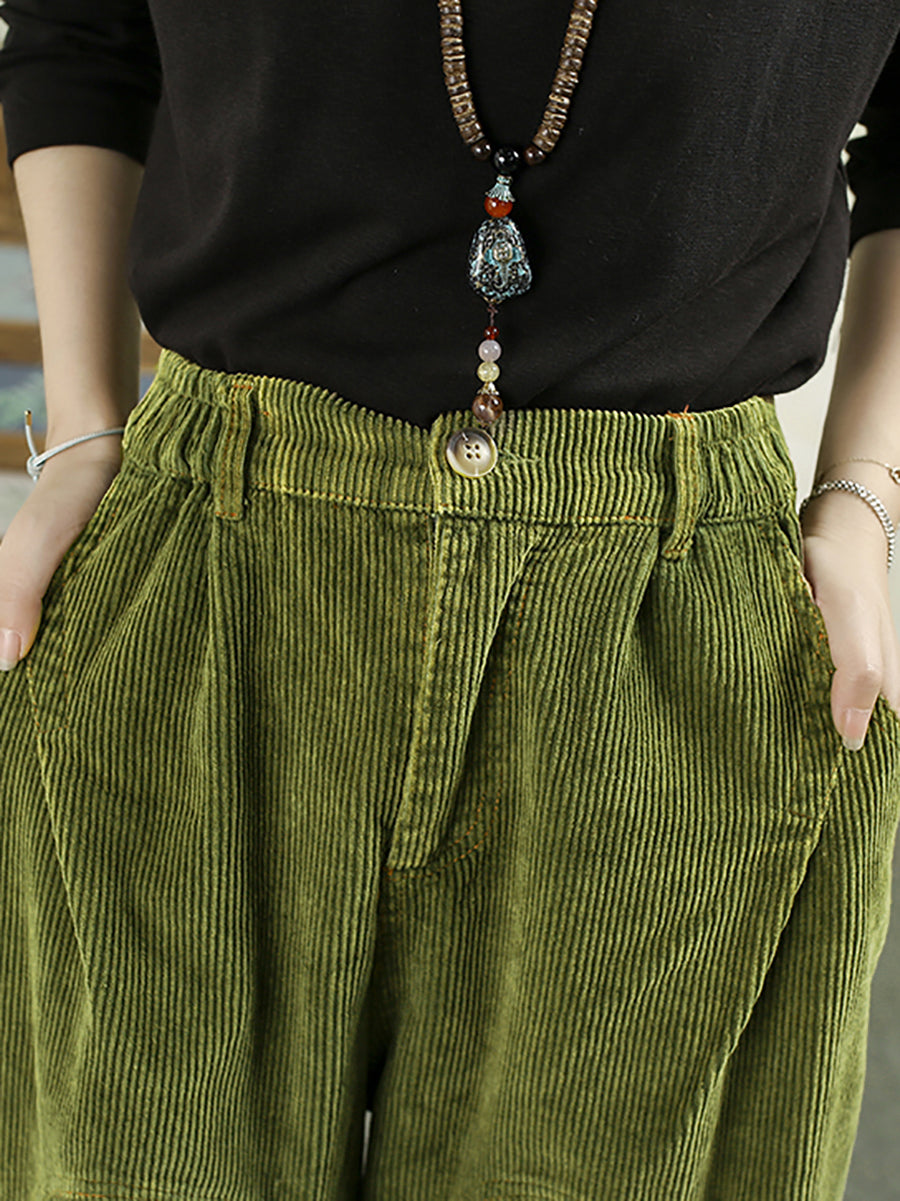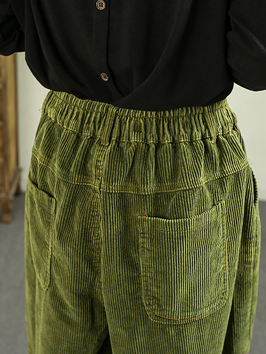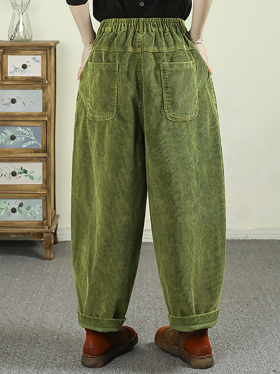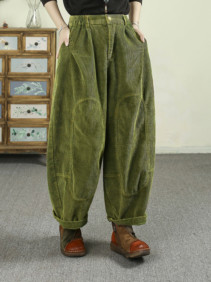 Plus Size Women Autumn Retro Pure Color Corduroy Harem Pants