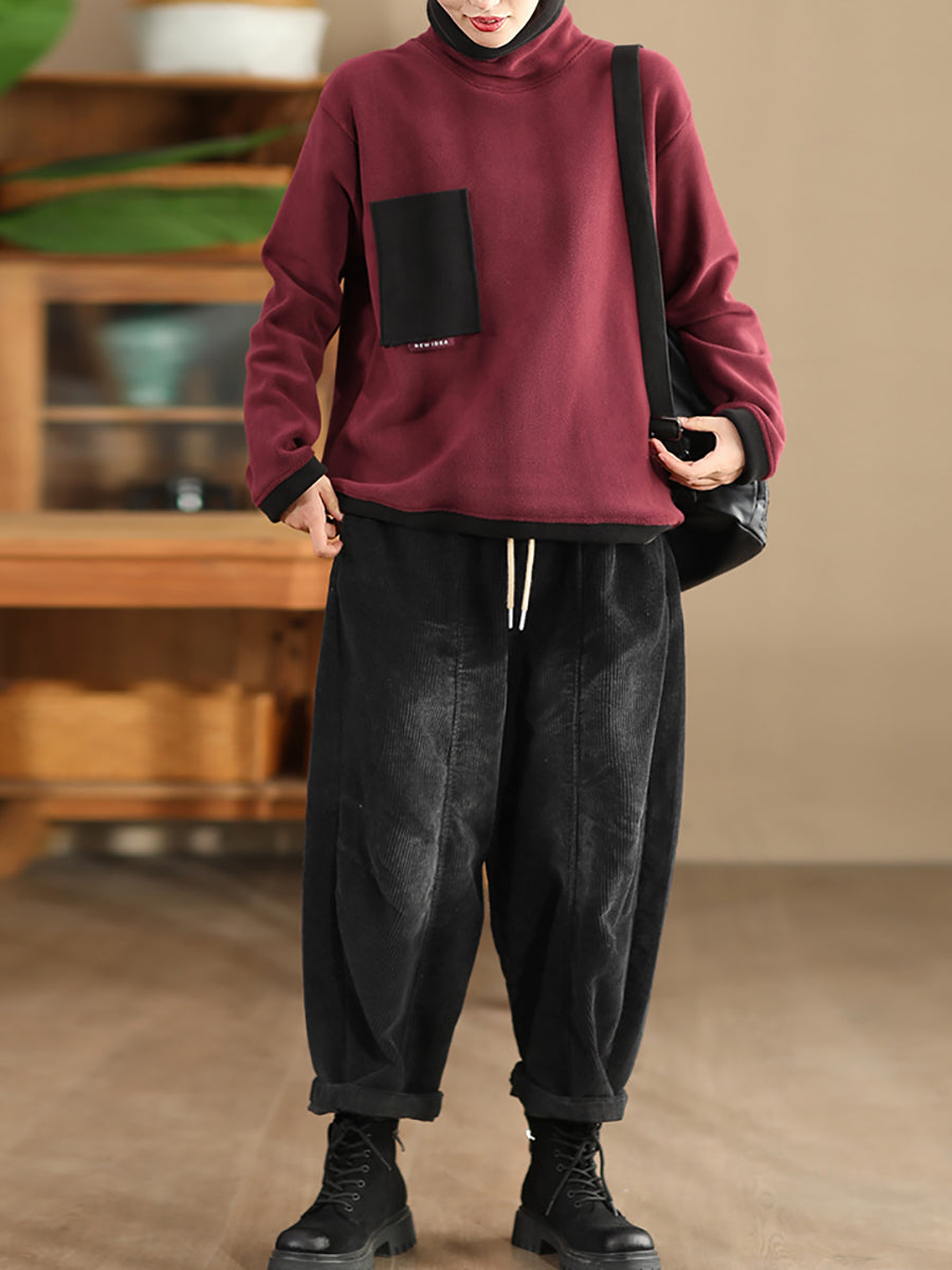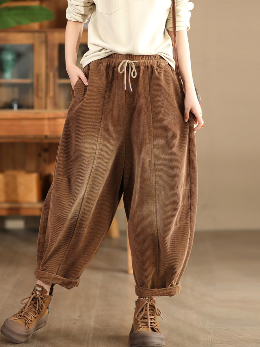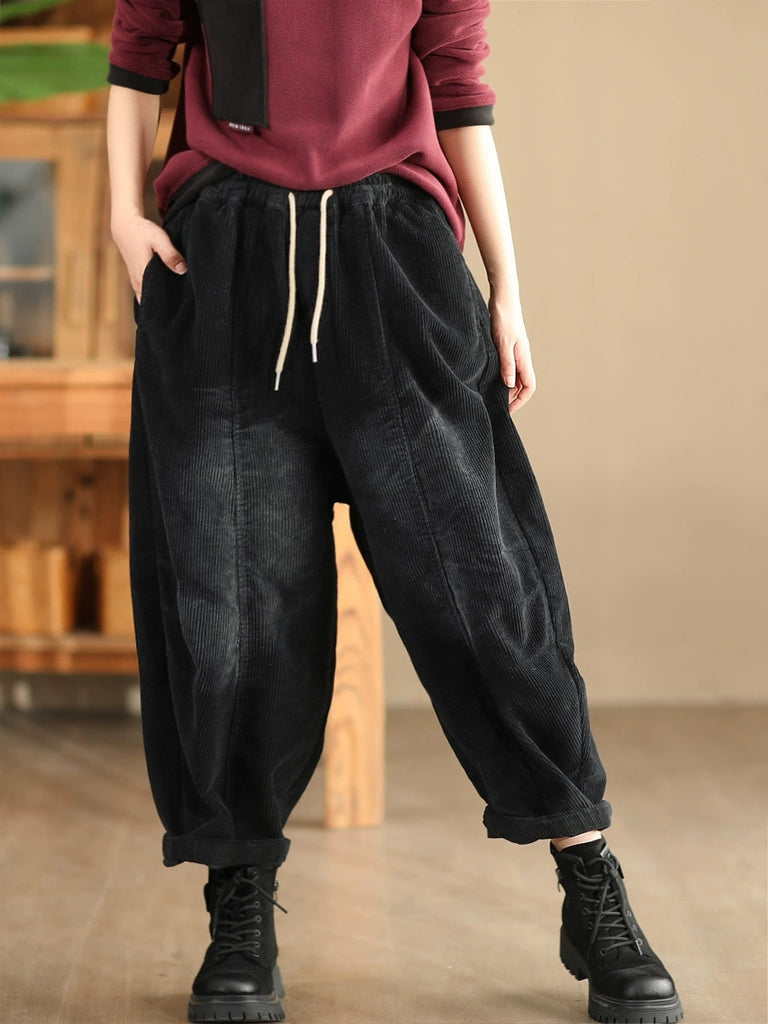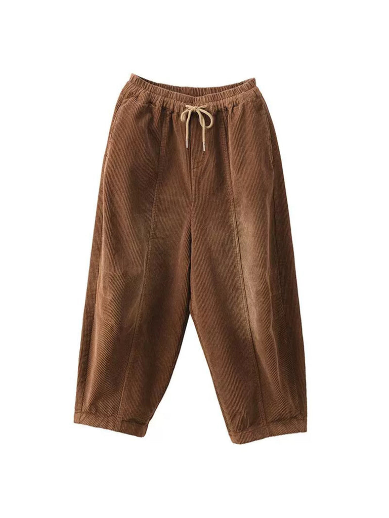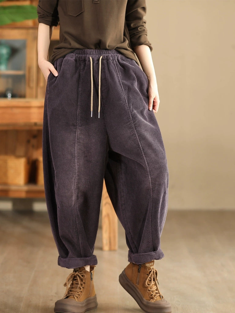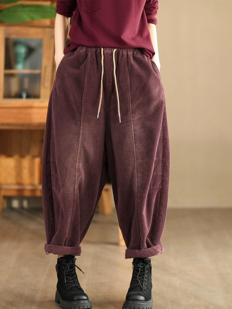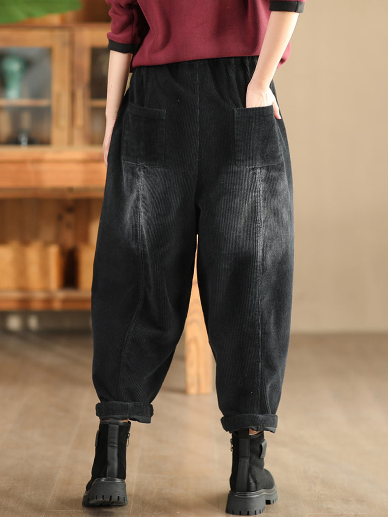Women Autumn Retro Pure Color Corduroy Harem Pants