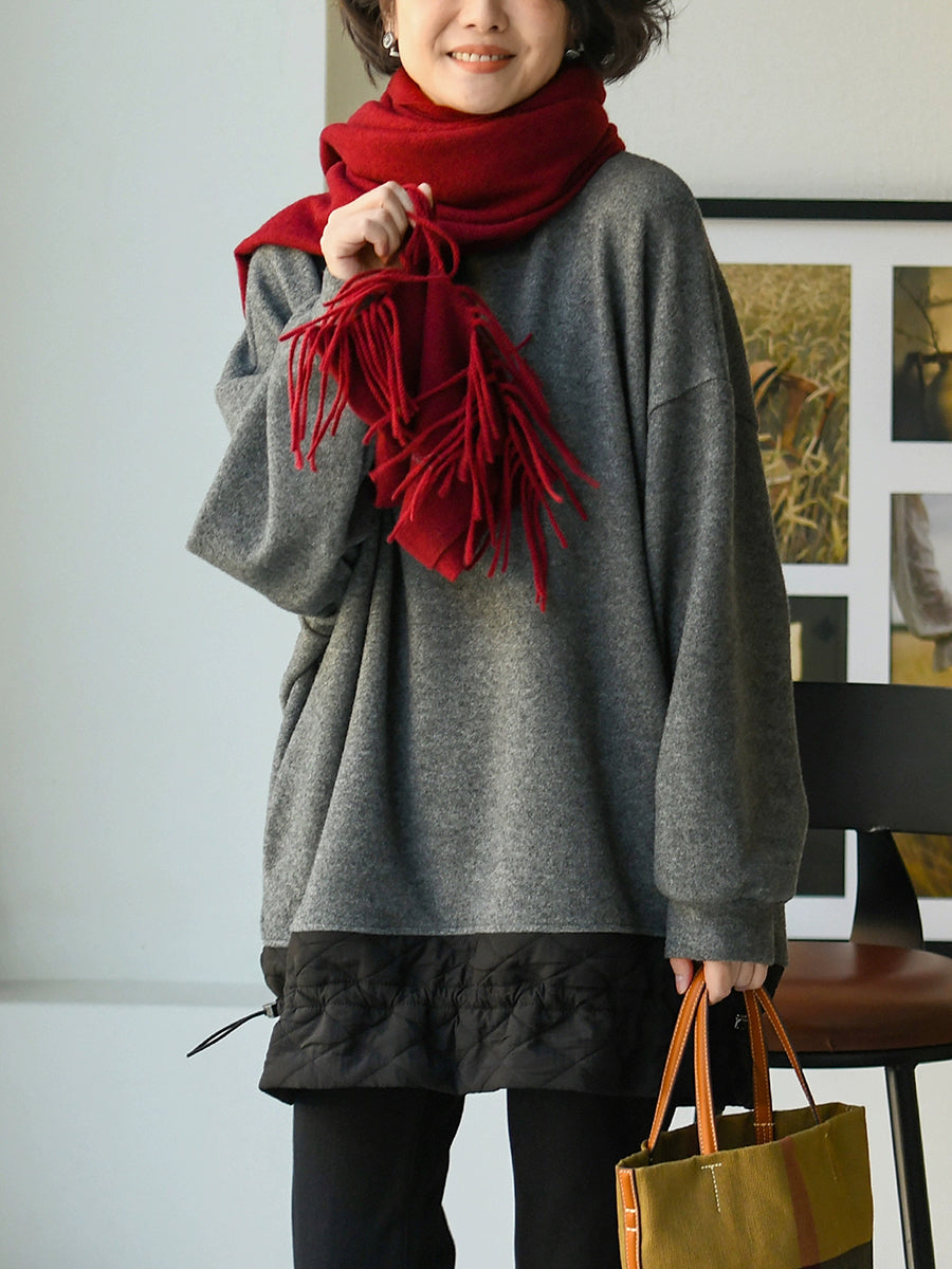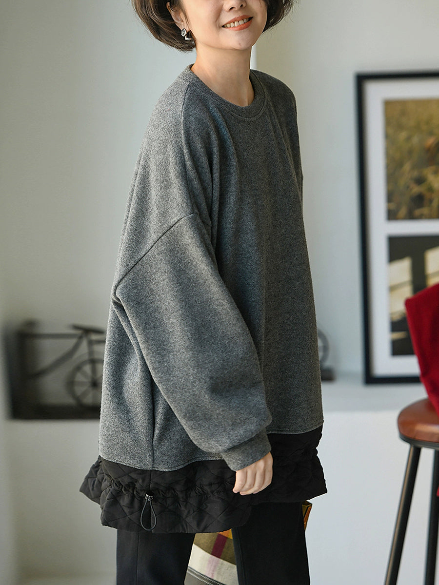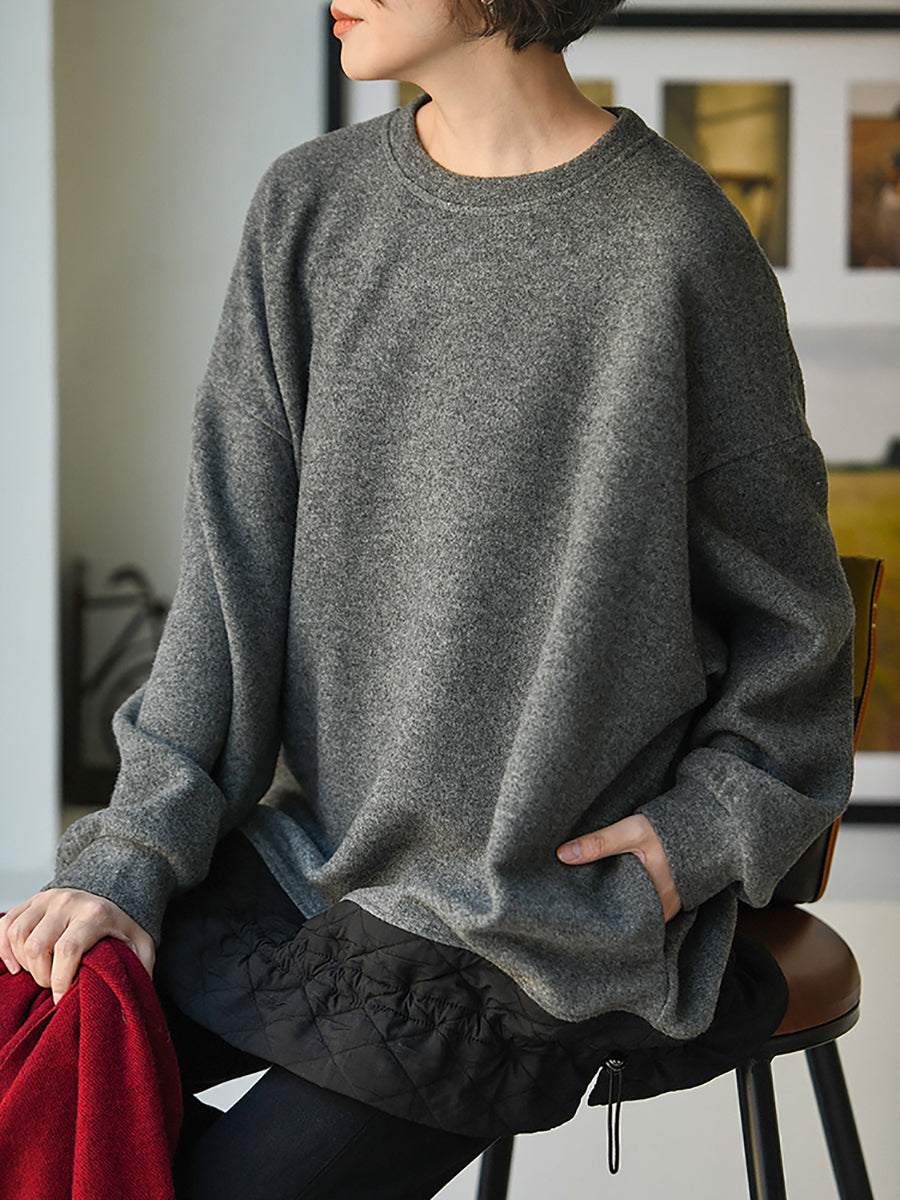 Women Casual Autumn Pure Color Spliced O-Neck Blouse