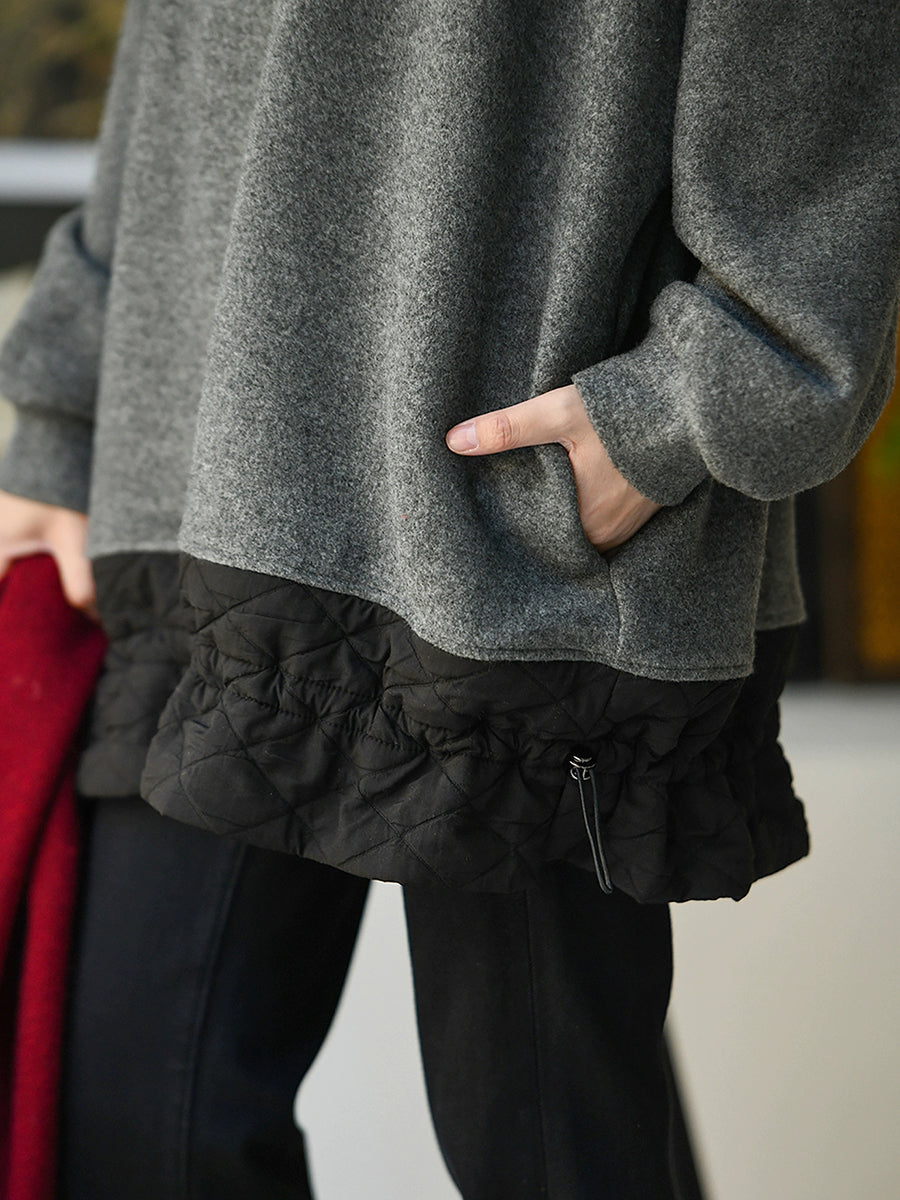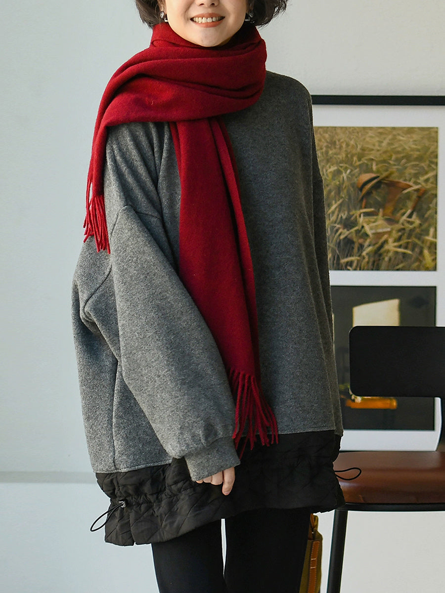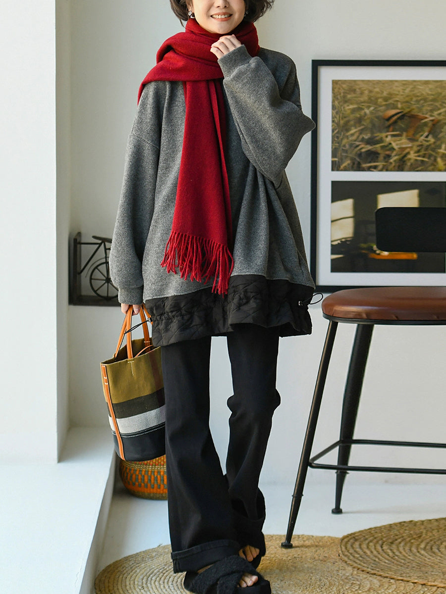 Women Casual Autumn Pure Color Spliced O-Neck Blouse