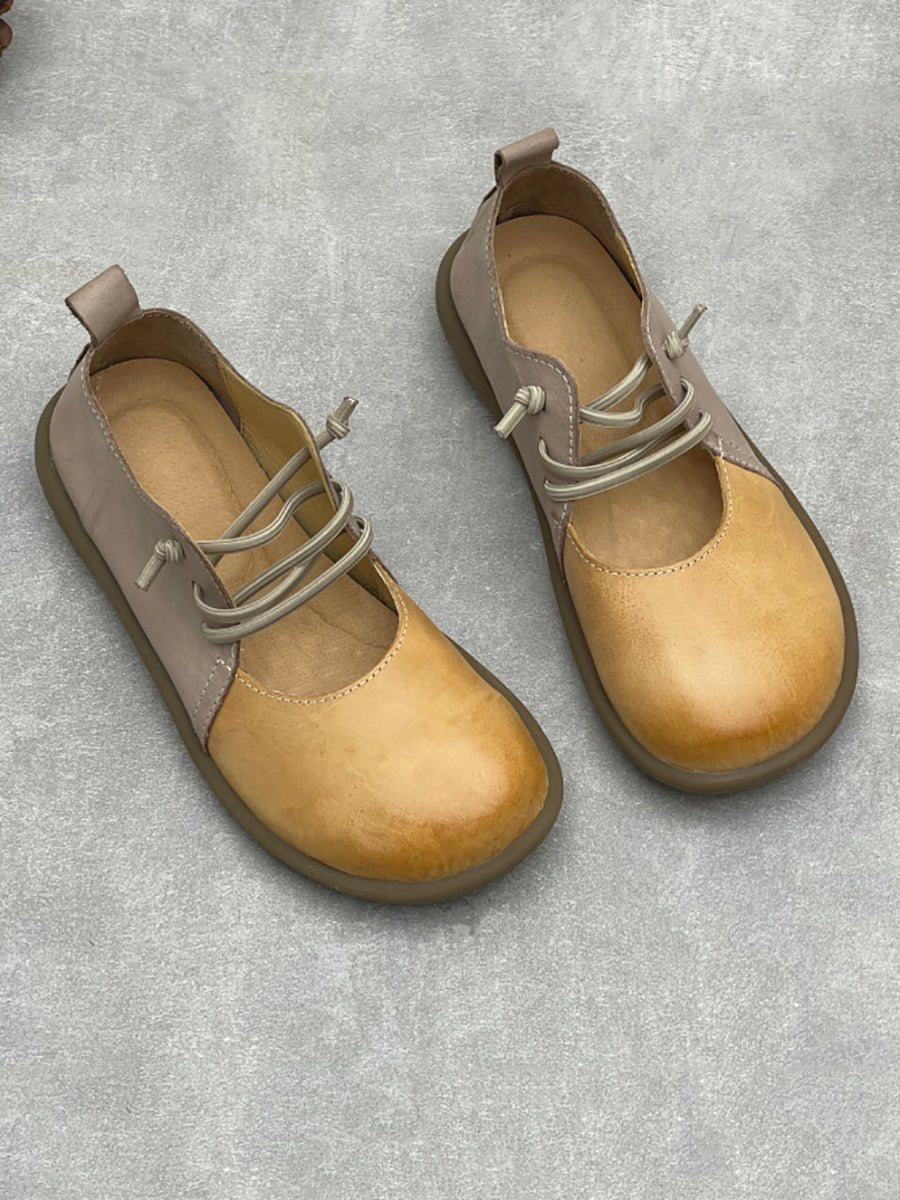 Women Casual Colorblock Leather Flat Shoes