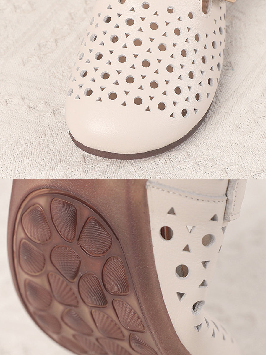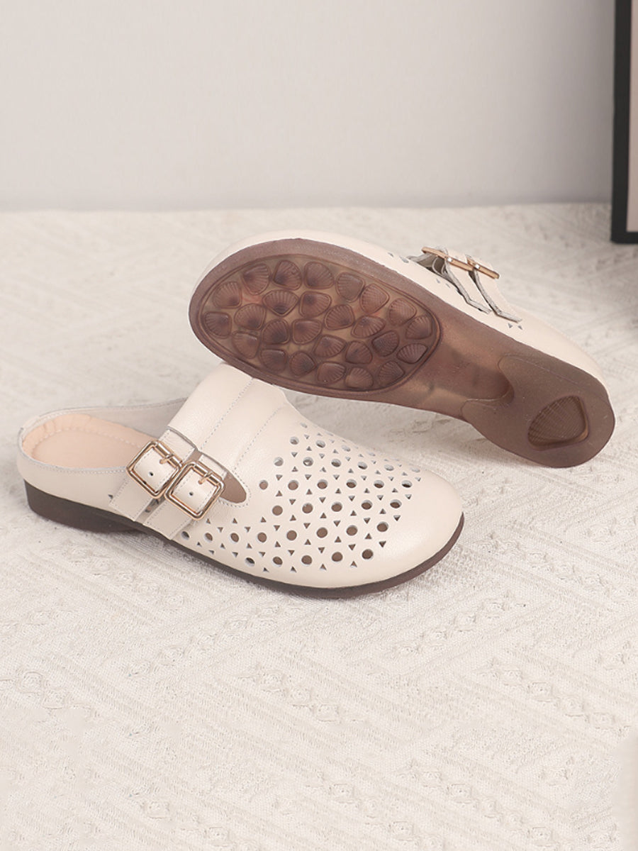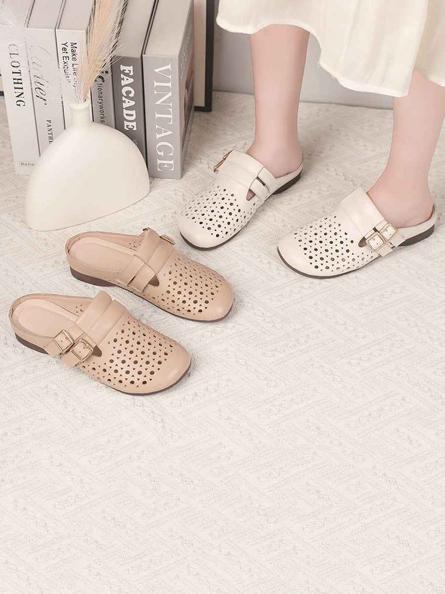 Women Casual Hole Genuine Leather Slippers