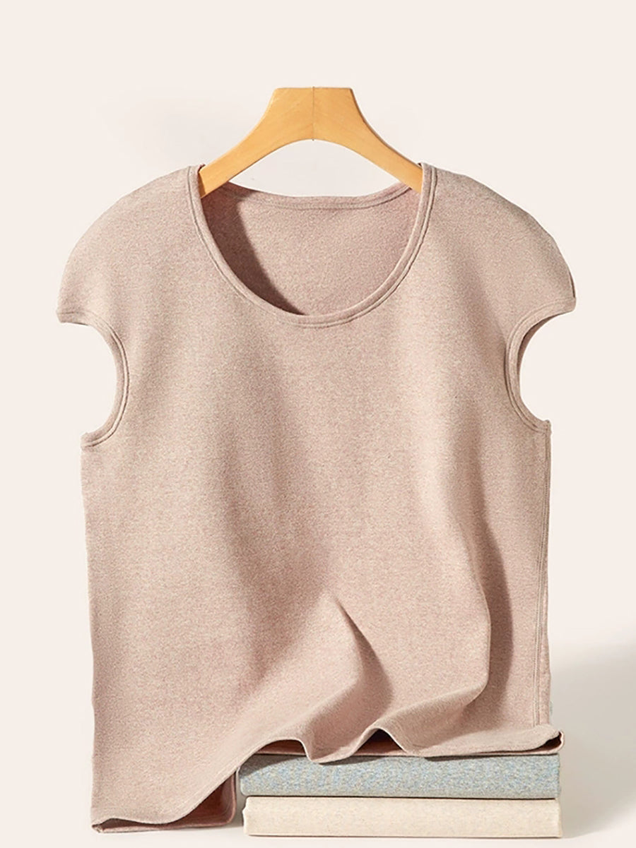Women Casual Pure Color O-Neck Base Vest