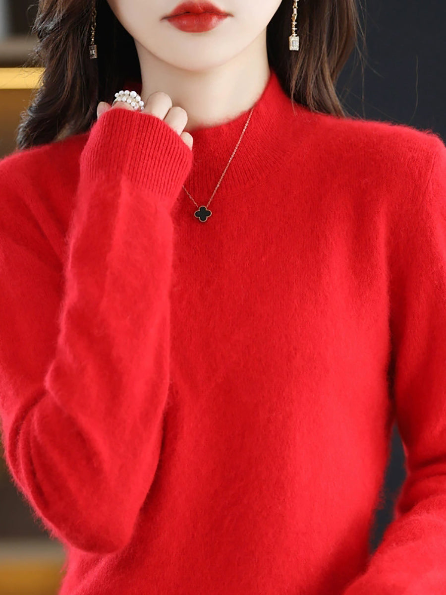 Women Casual Spring Pure Color Half-turtleneck Sweater