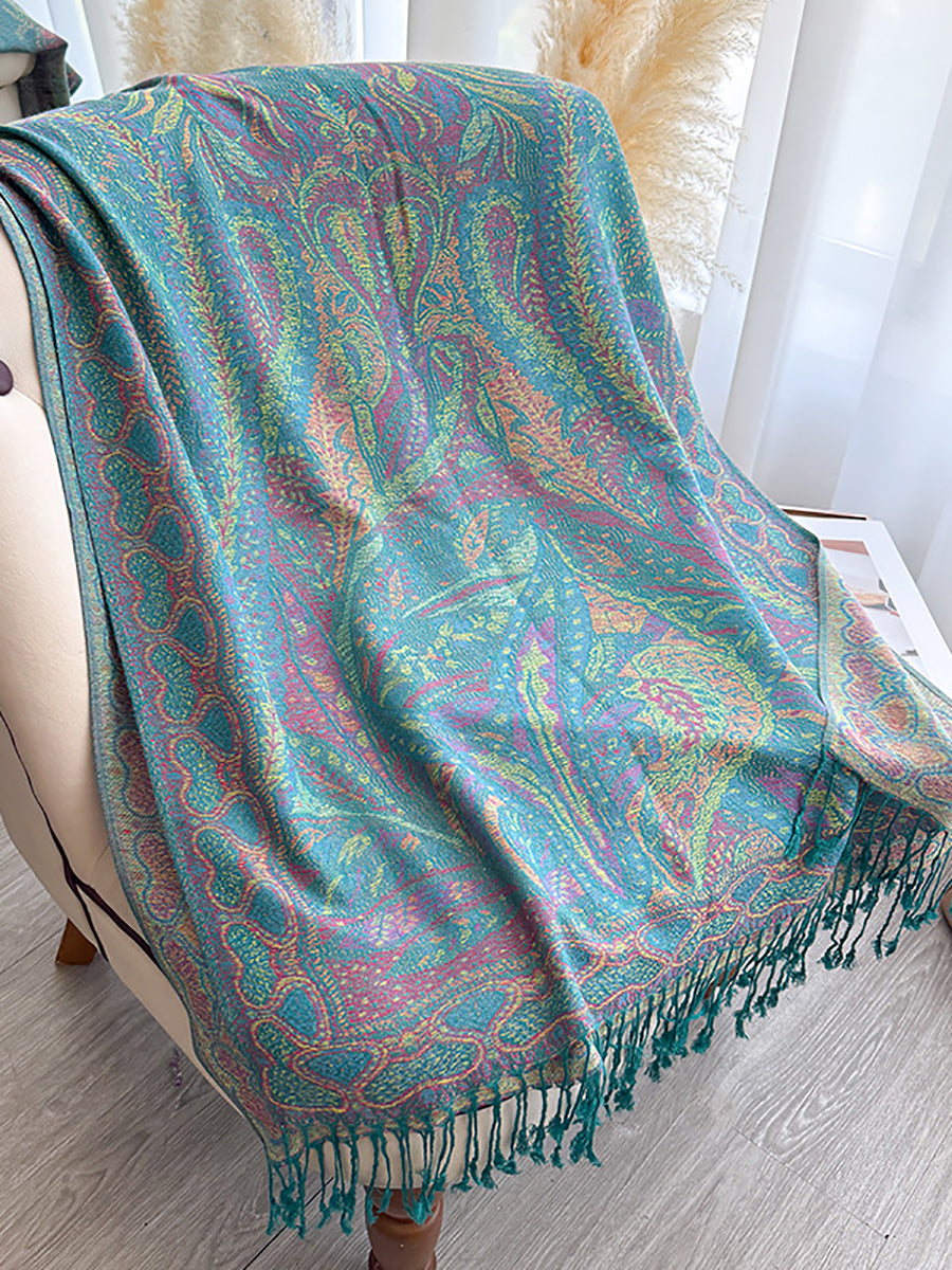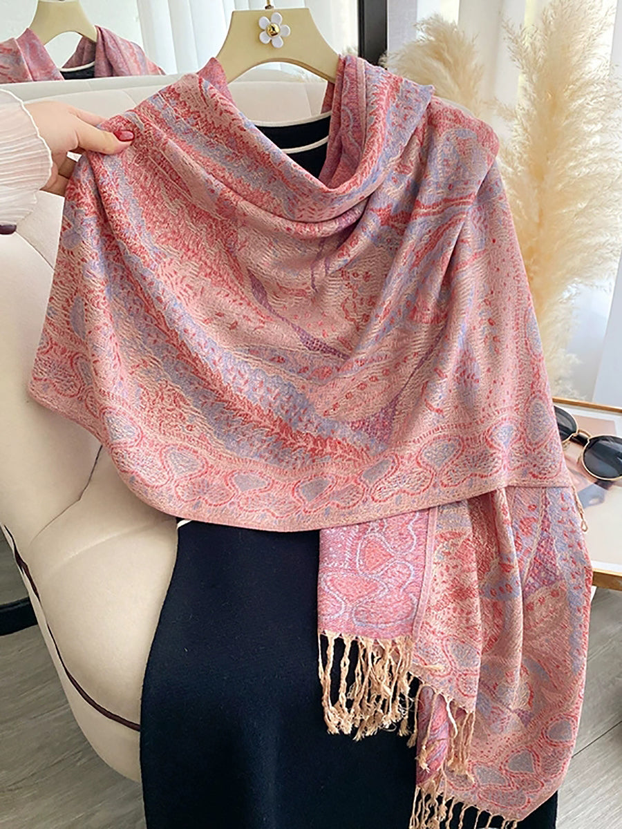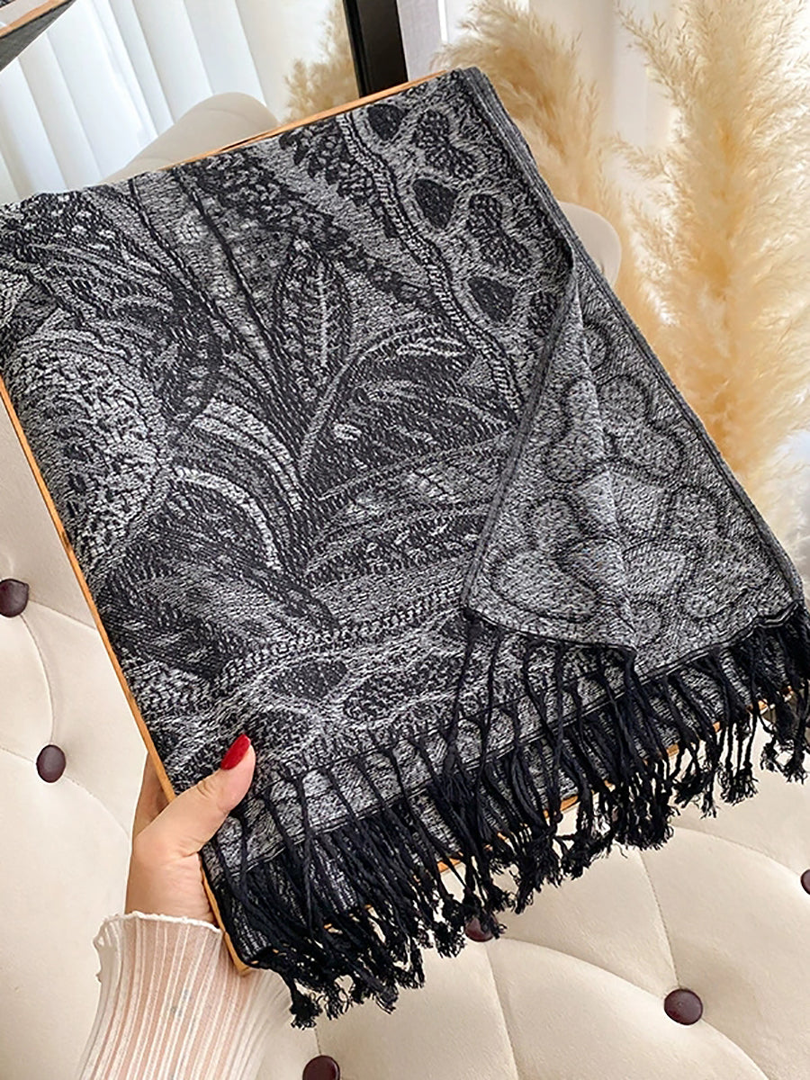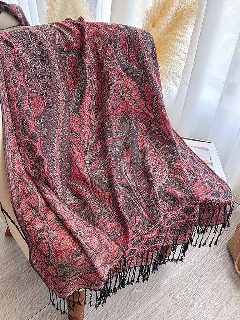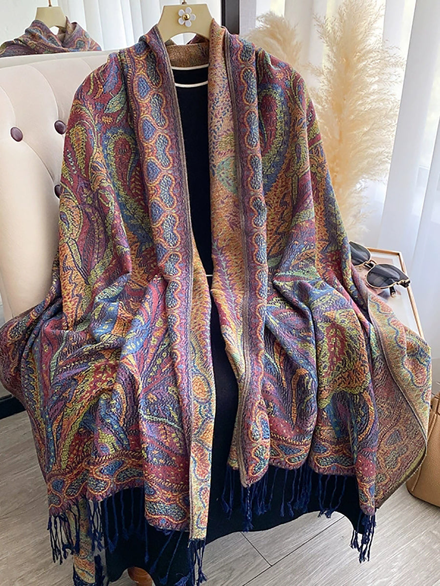 Women Ethnic Jacquard Tassel Shawl Scarf