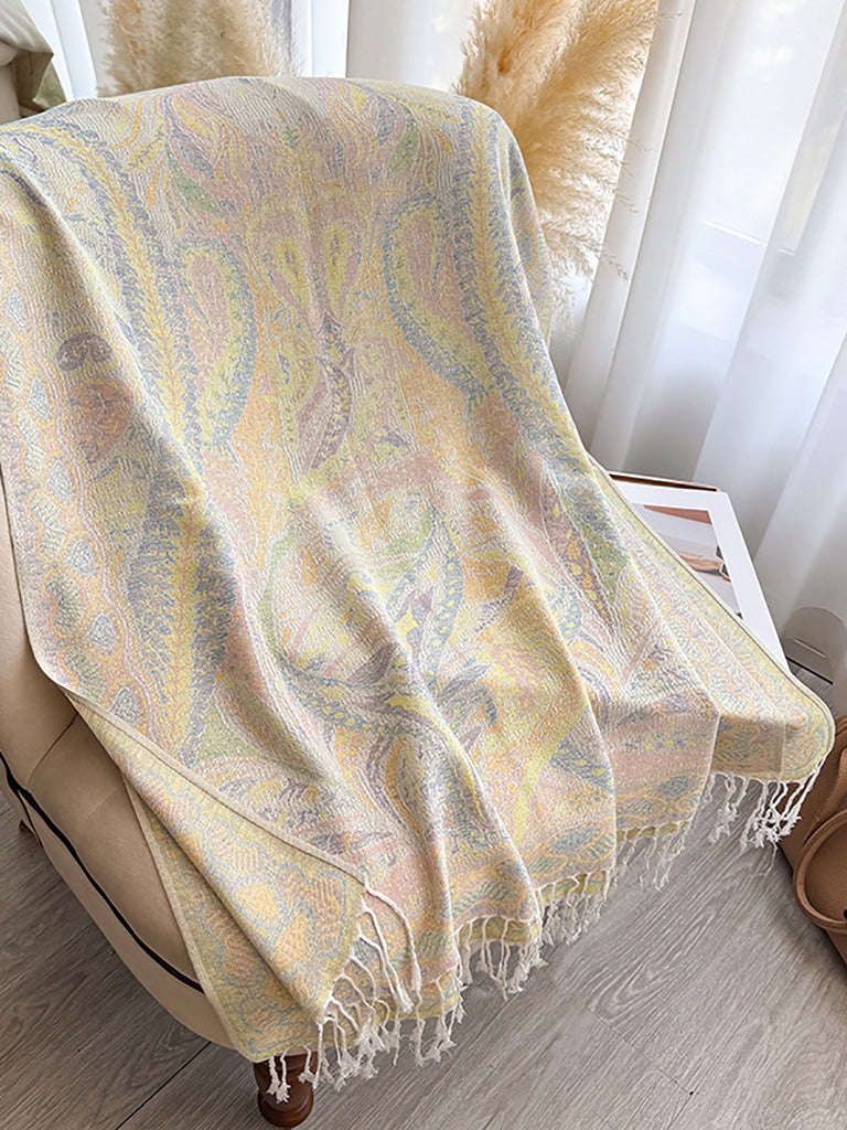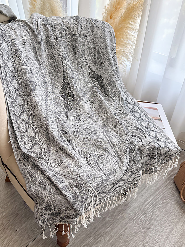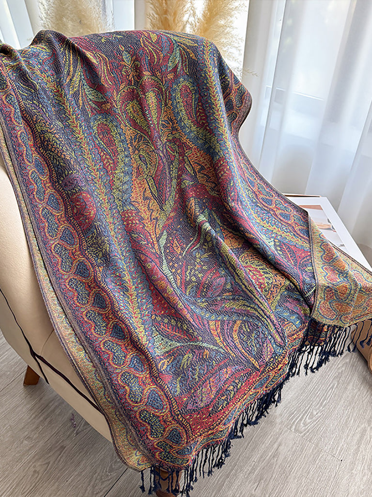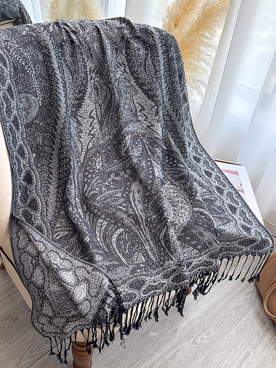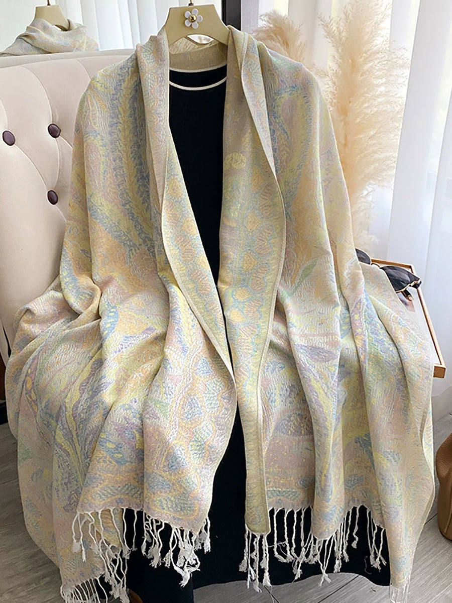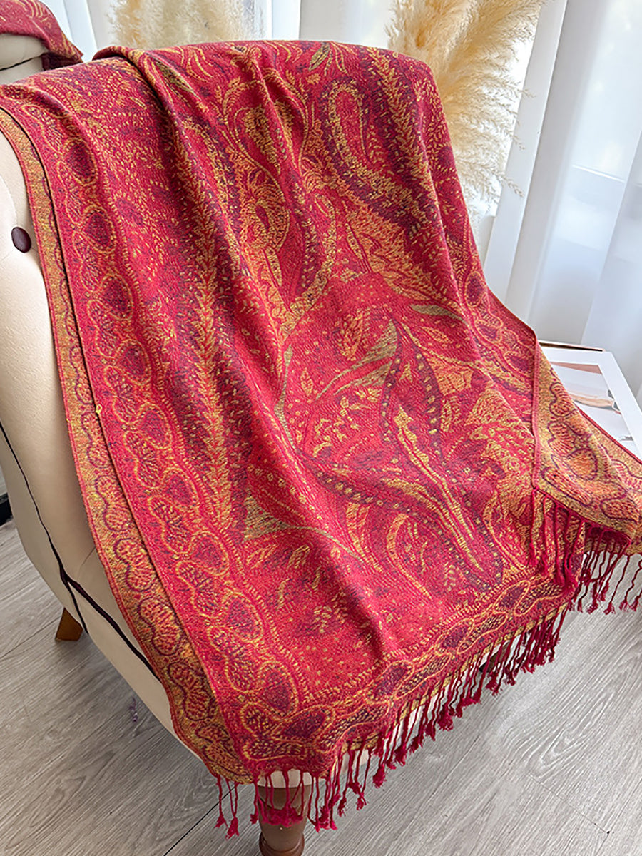 Women Ethnic Jacquard Tassel Shawl Scarf
