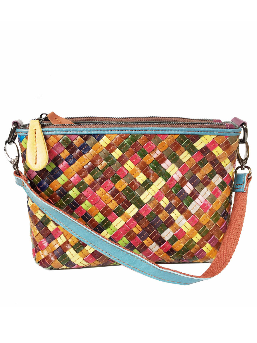 Women Colorblocking Hand Woven Leather Crossbody Bag