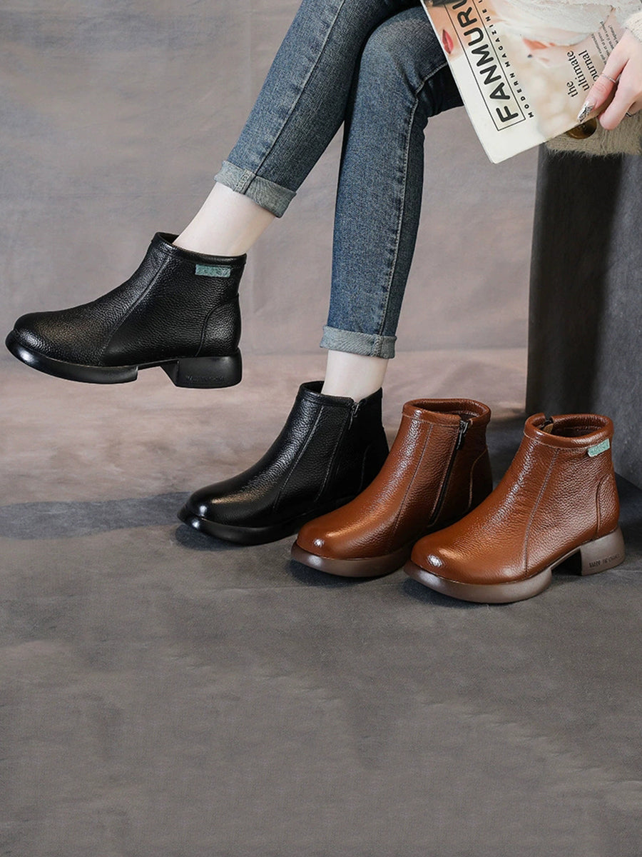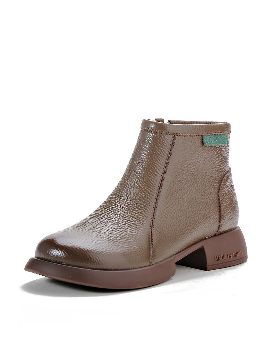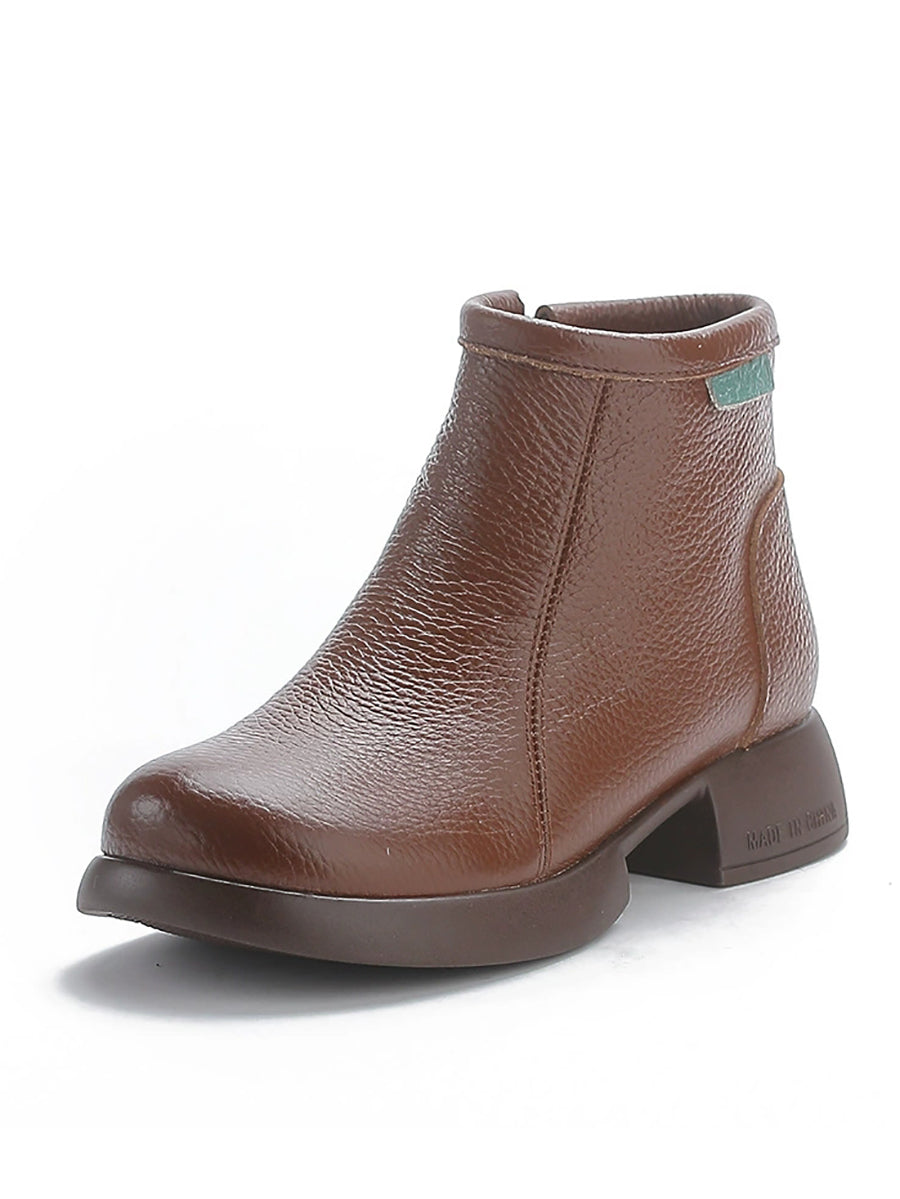 Women Retro Genuine Leather Mid-heel Ankle Boots