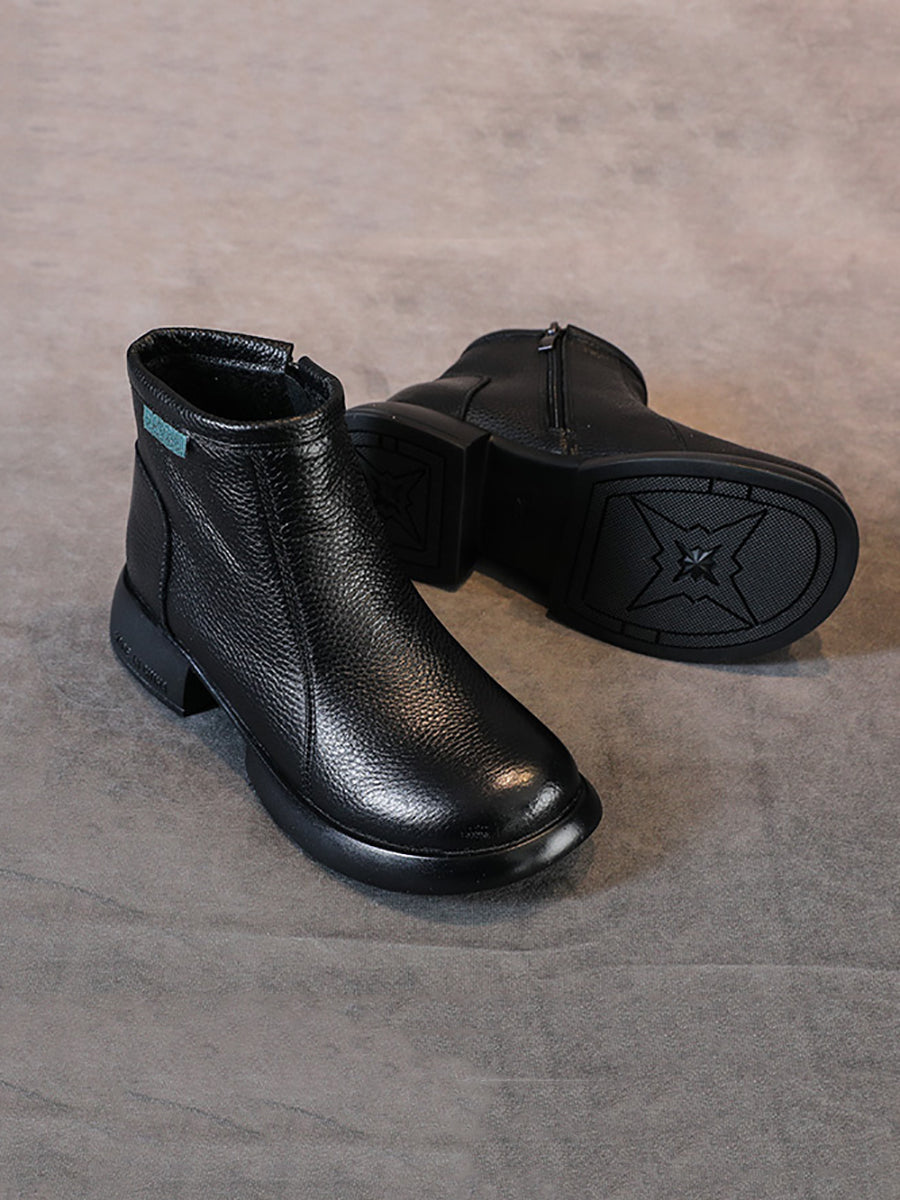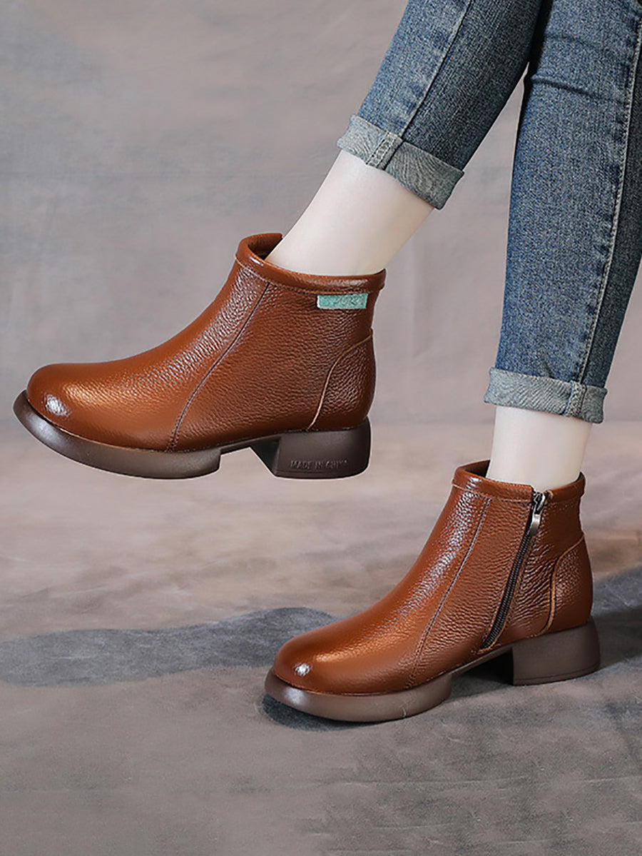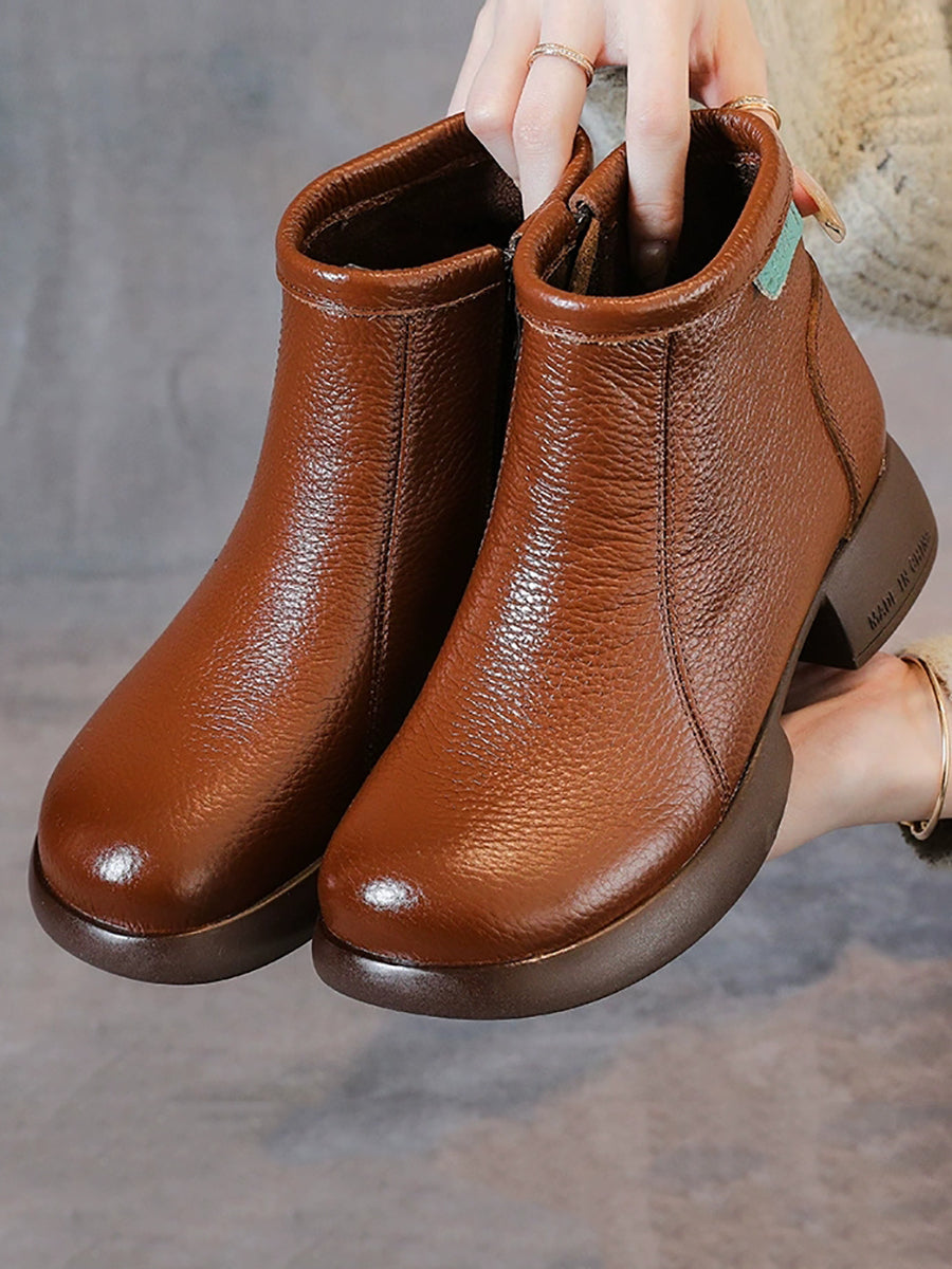 Women Retro Genuine Leather Mid-heel Ankle Boots