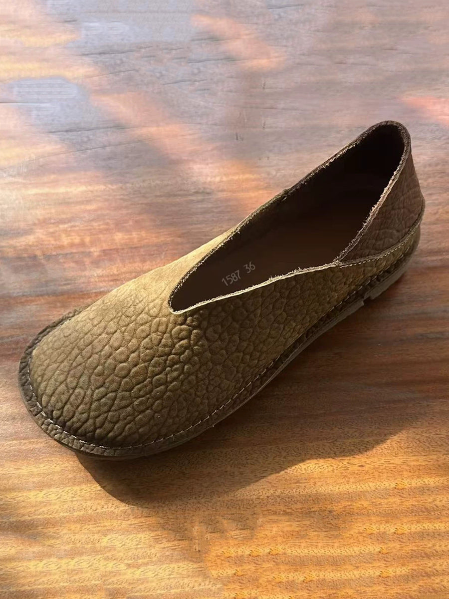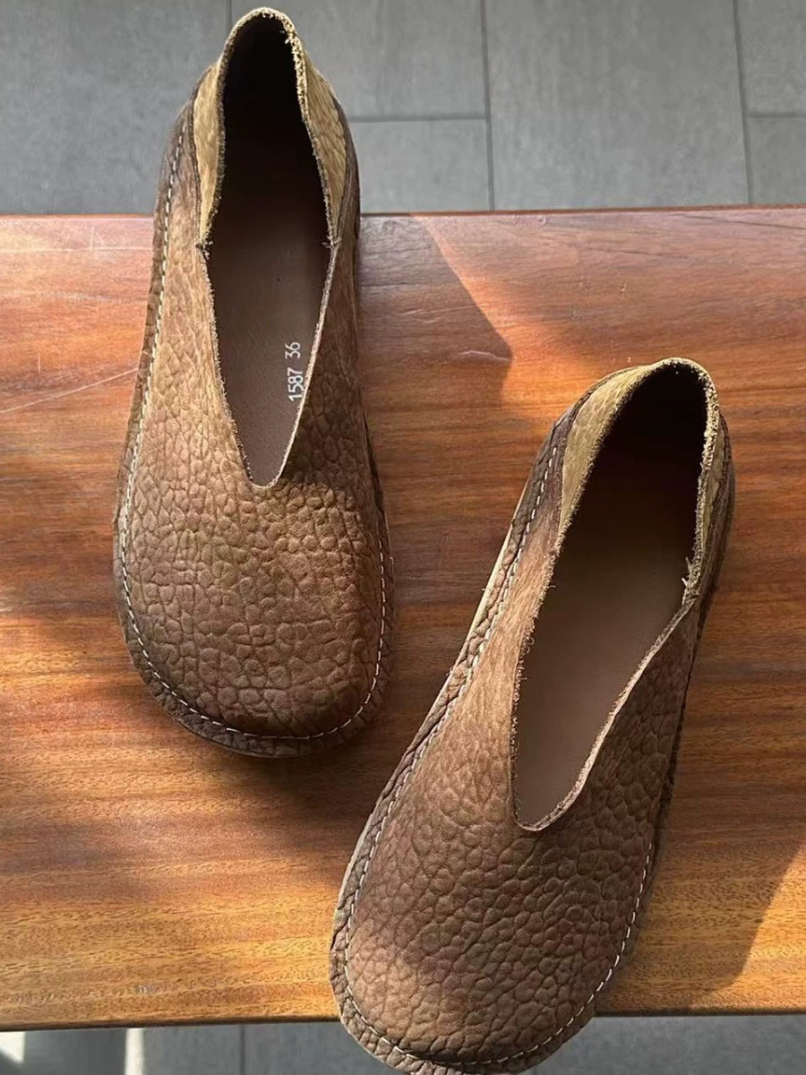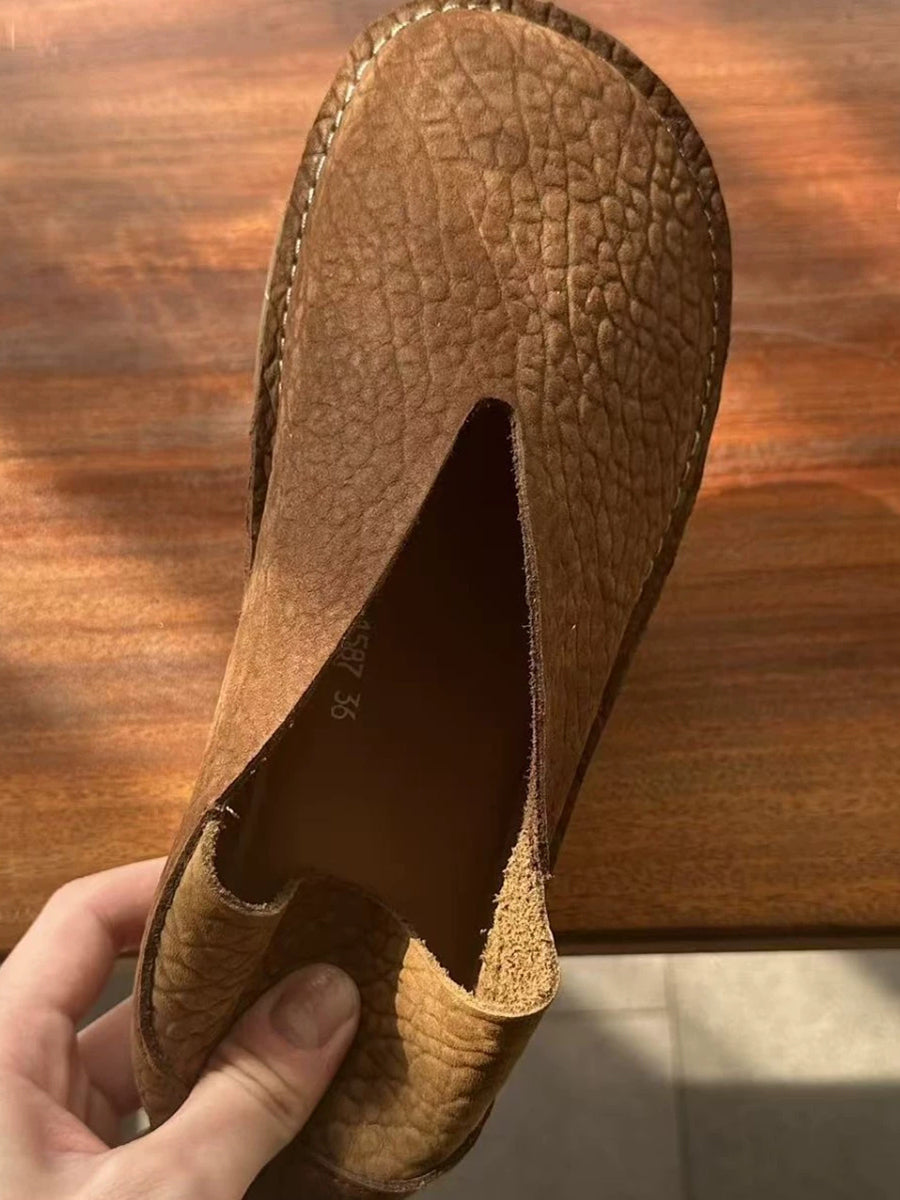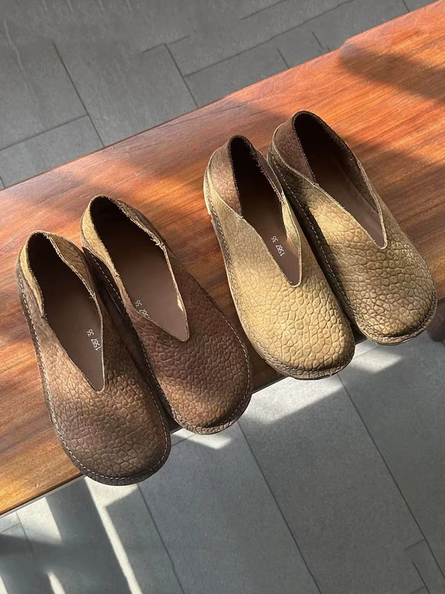 Women Retro Genuine Leather Spliced Flat Shoes