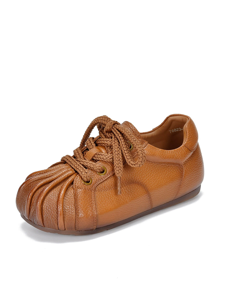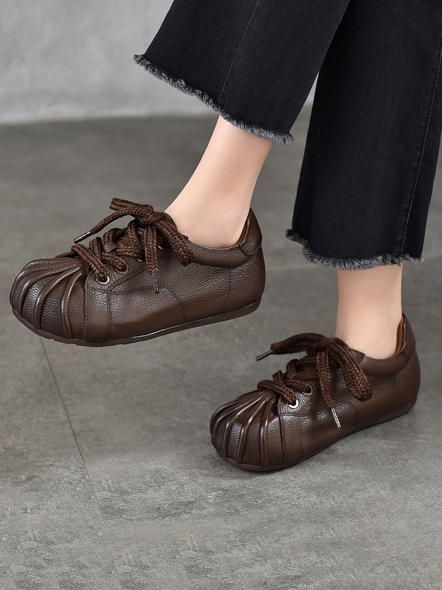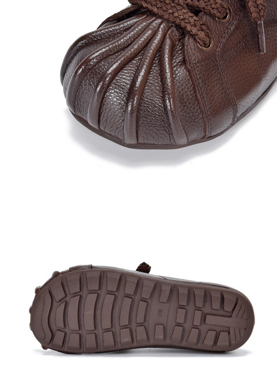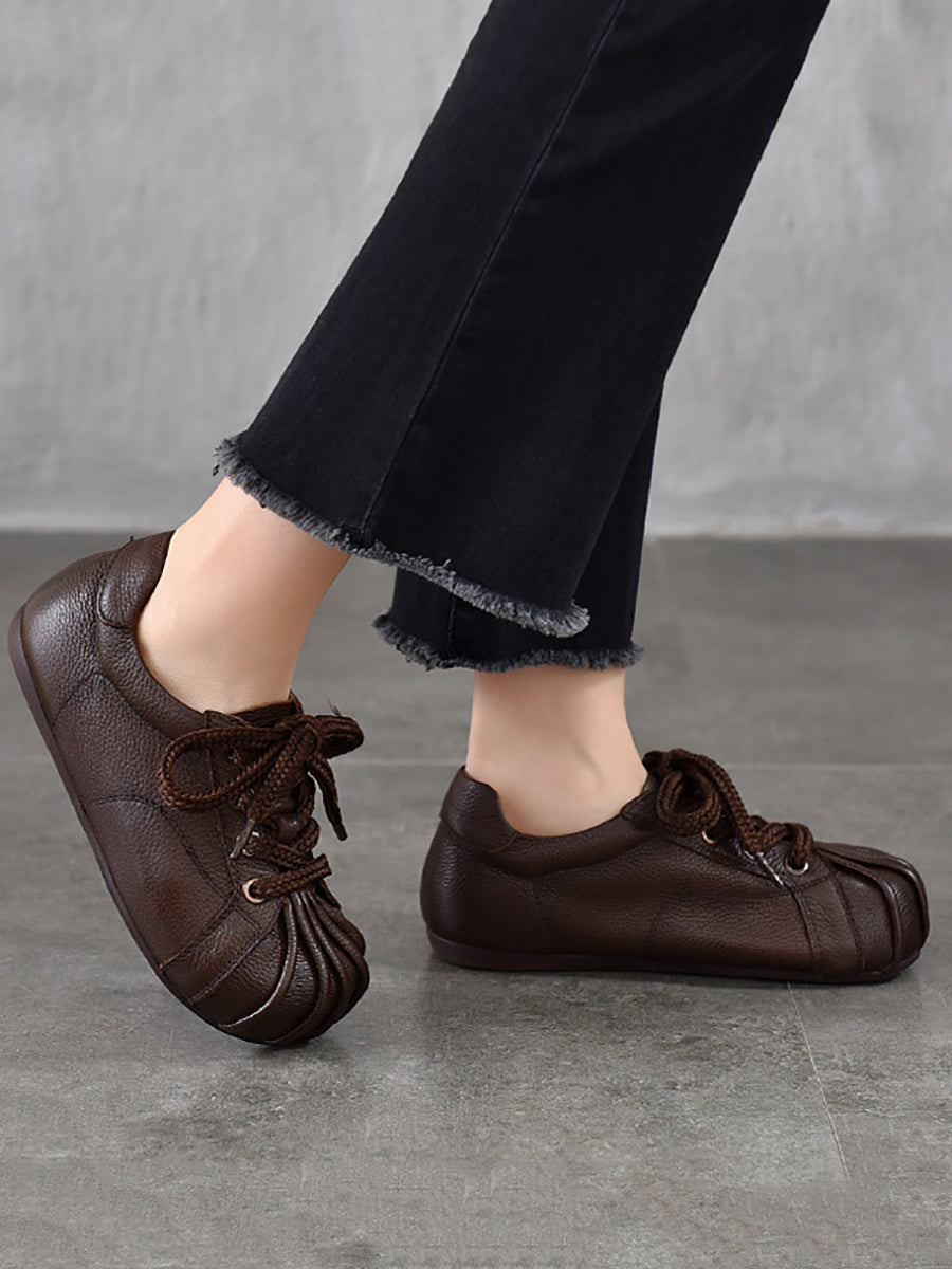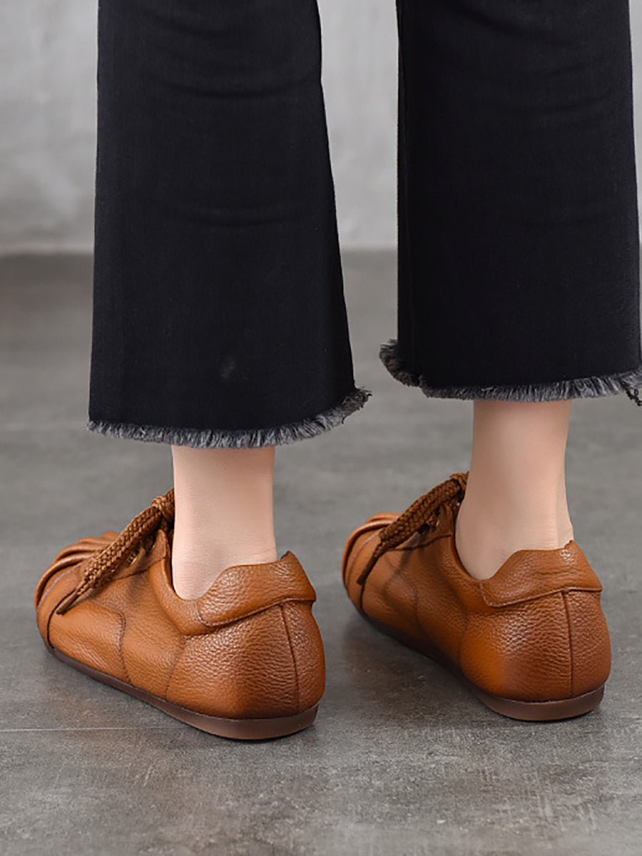 Women Retro Genuine Leather Spliced Flat Shoes