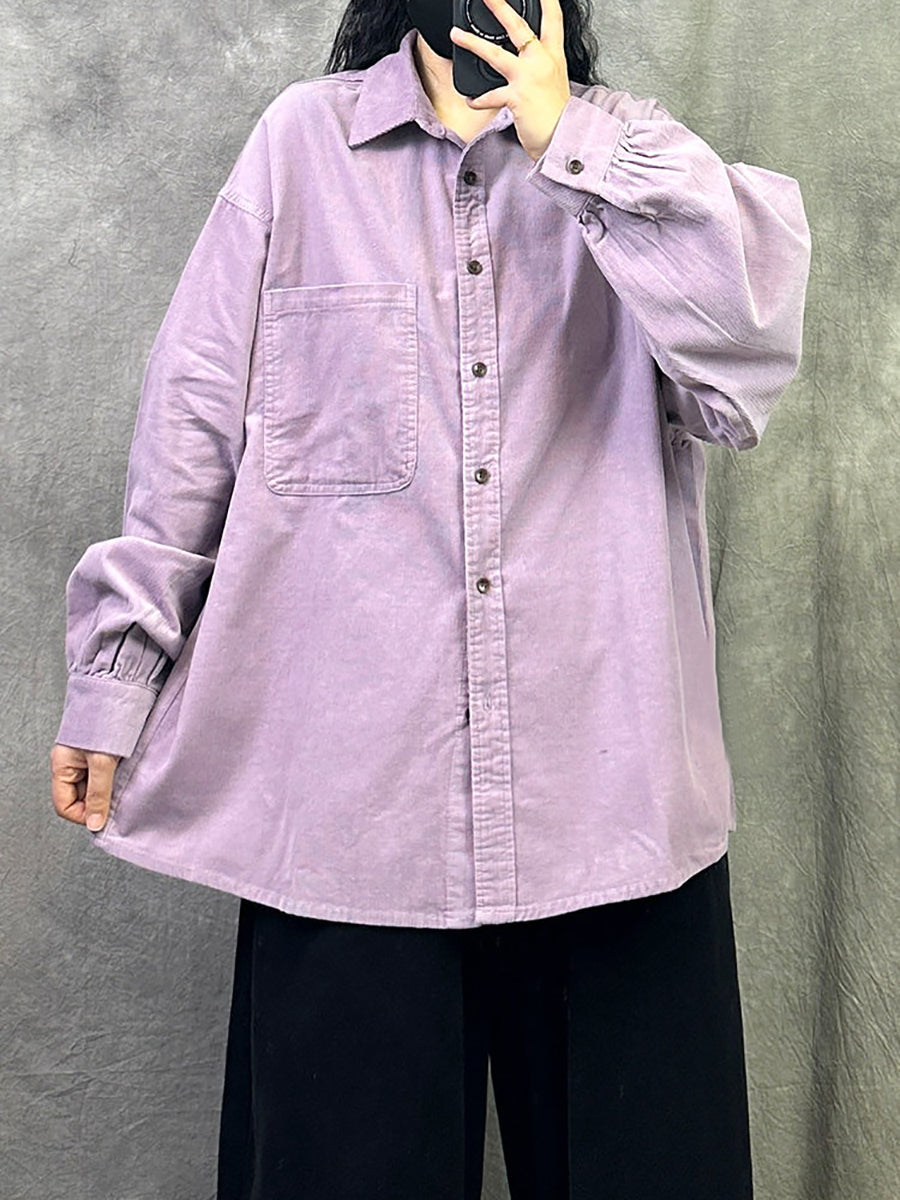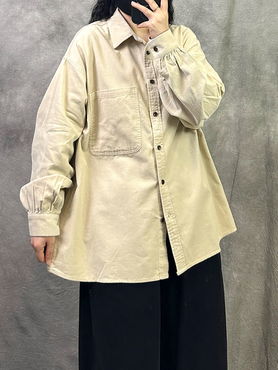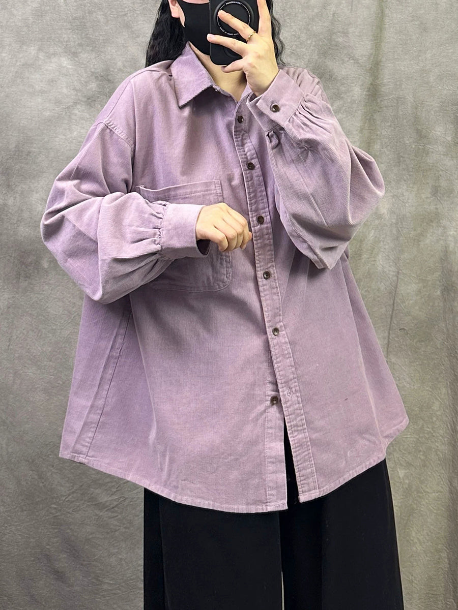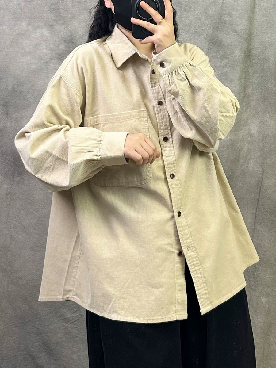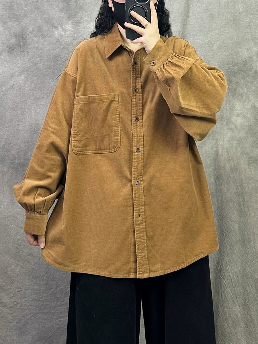 Women Retro Spring Pure Color Corduroy Shirt