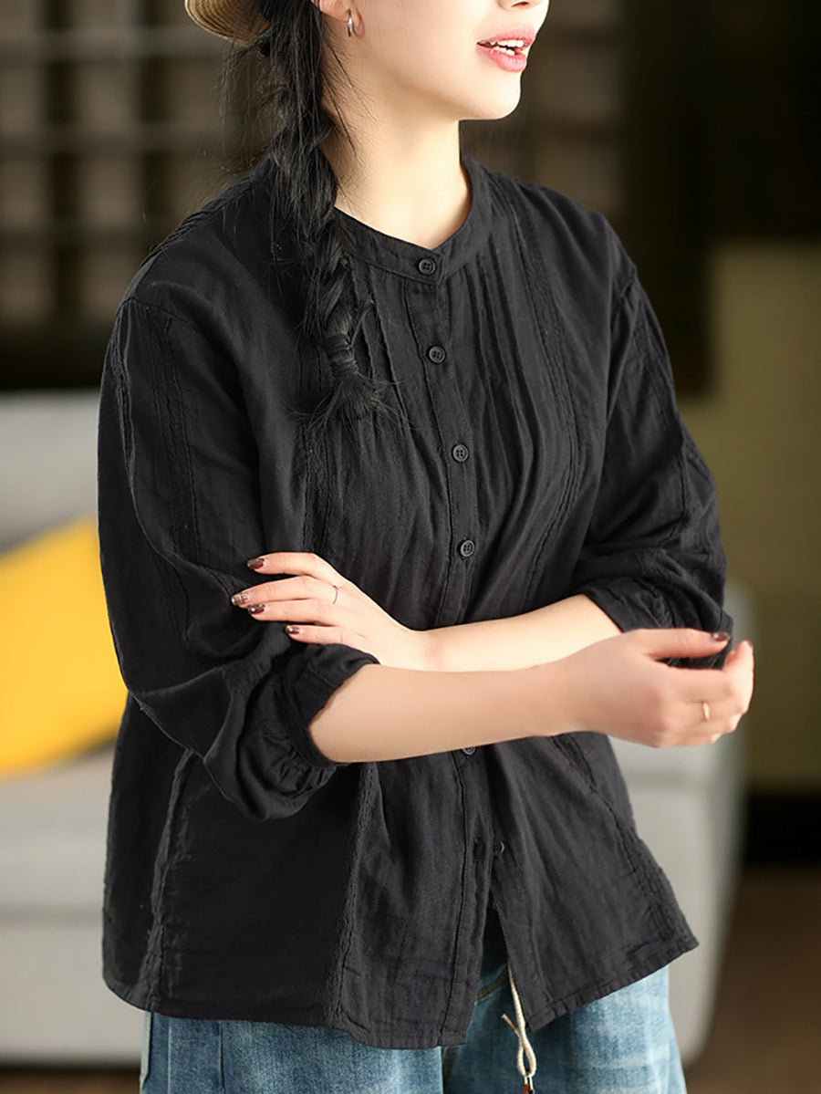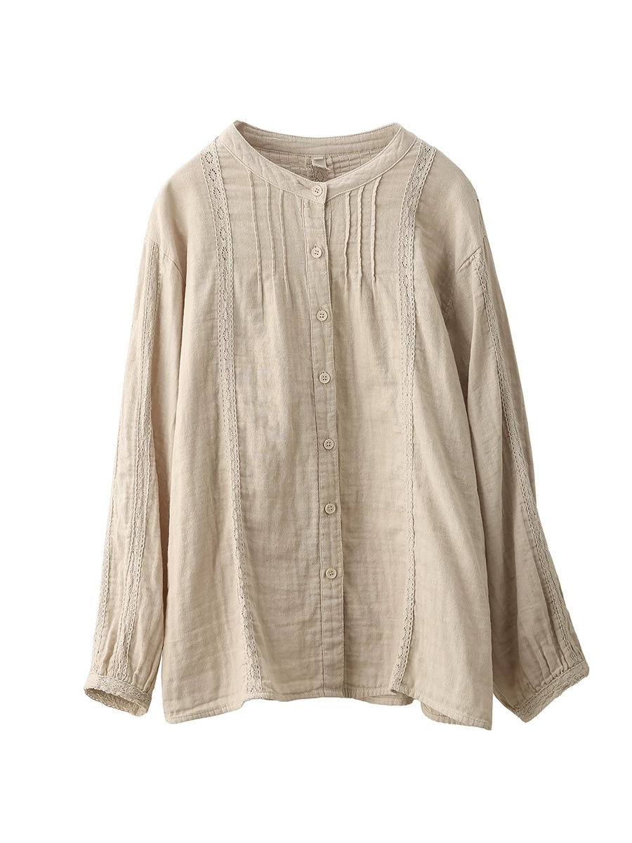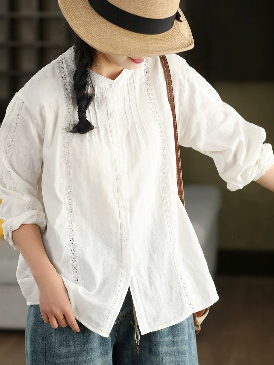Women Spring Artsy Lace Spliced 100%Cotton Shirt
