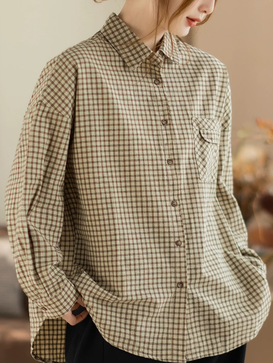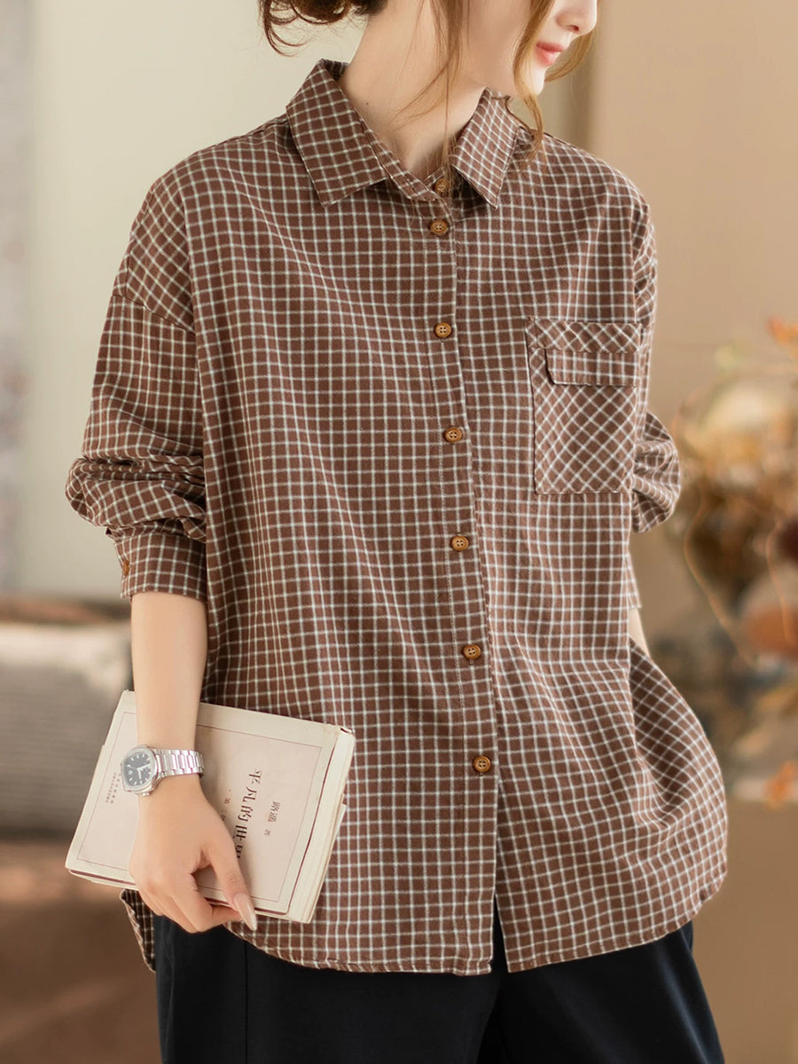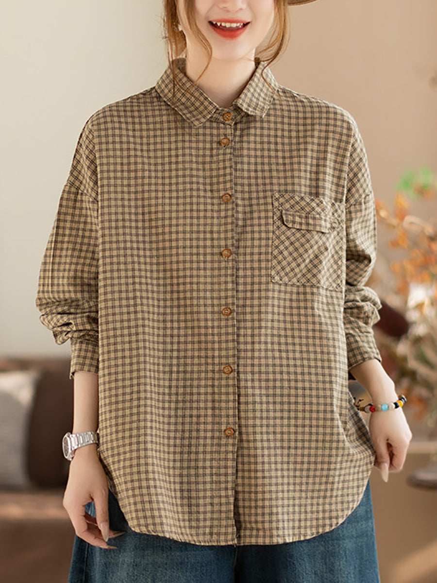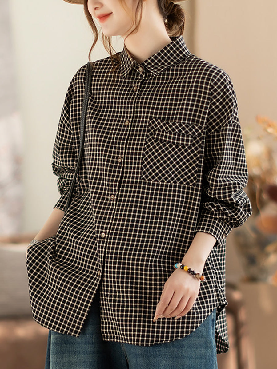 Women Spring Artsy Lattice Turn-down Collar Shirt