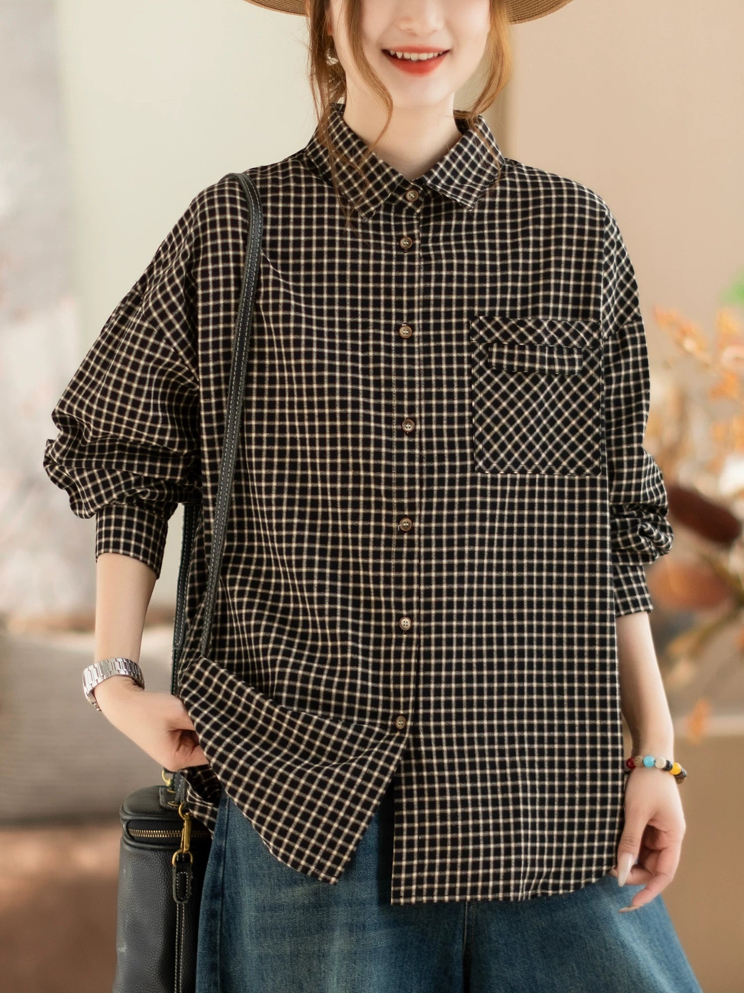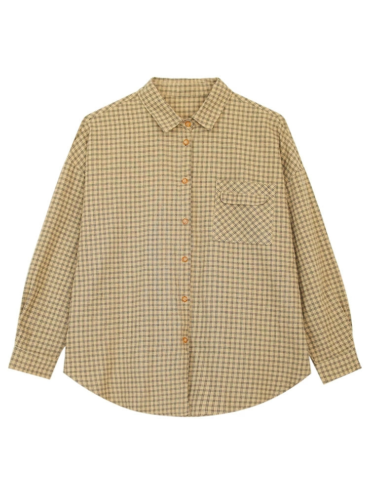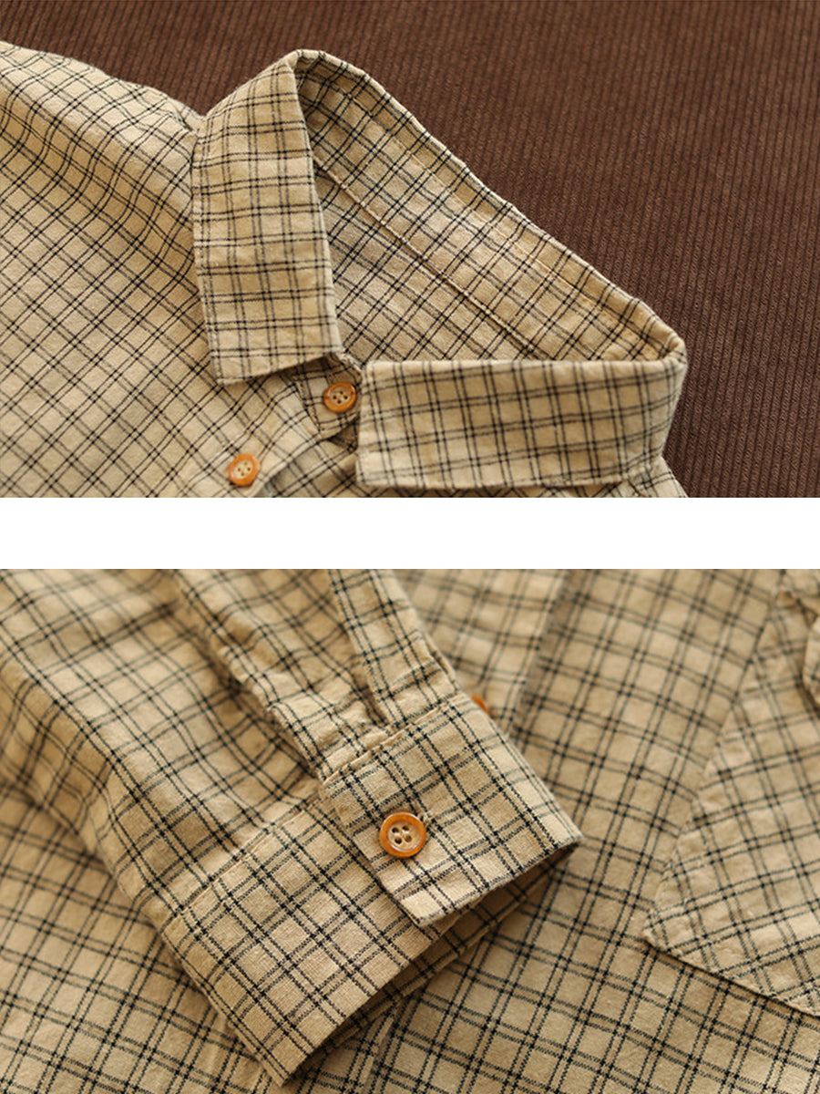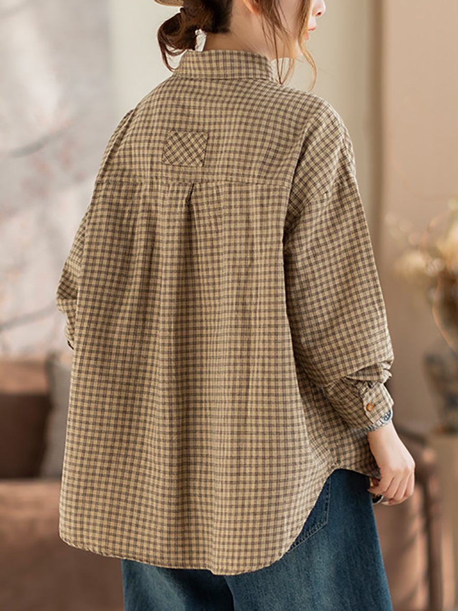 Women Spring Artsy Lattice Turn-down Collar Shirt