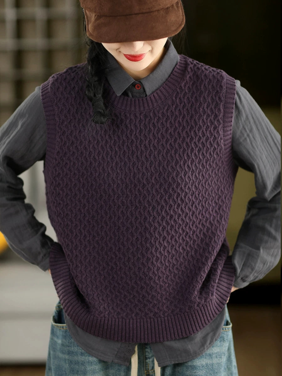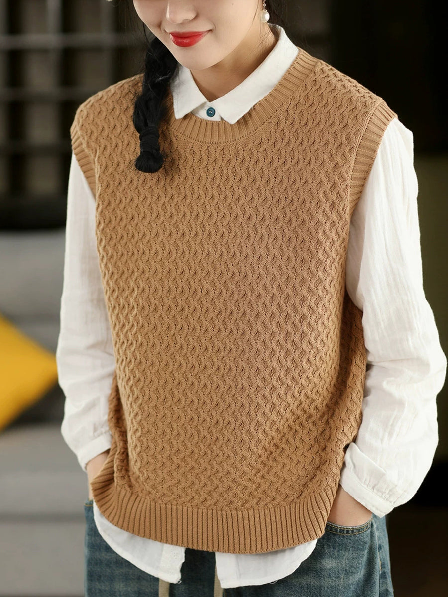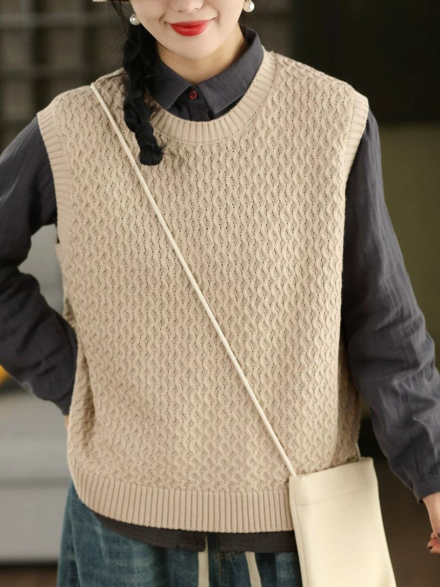 Women Spring Artsy O-Neck Pure Color Knitted Vest