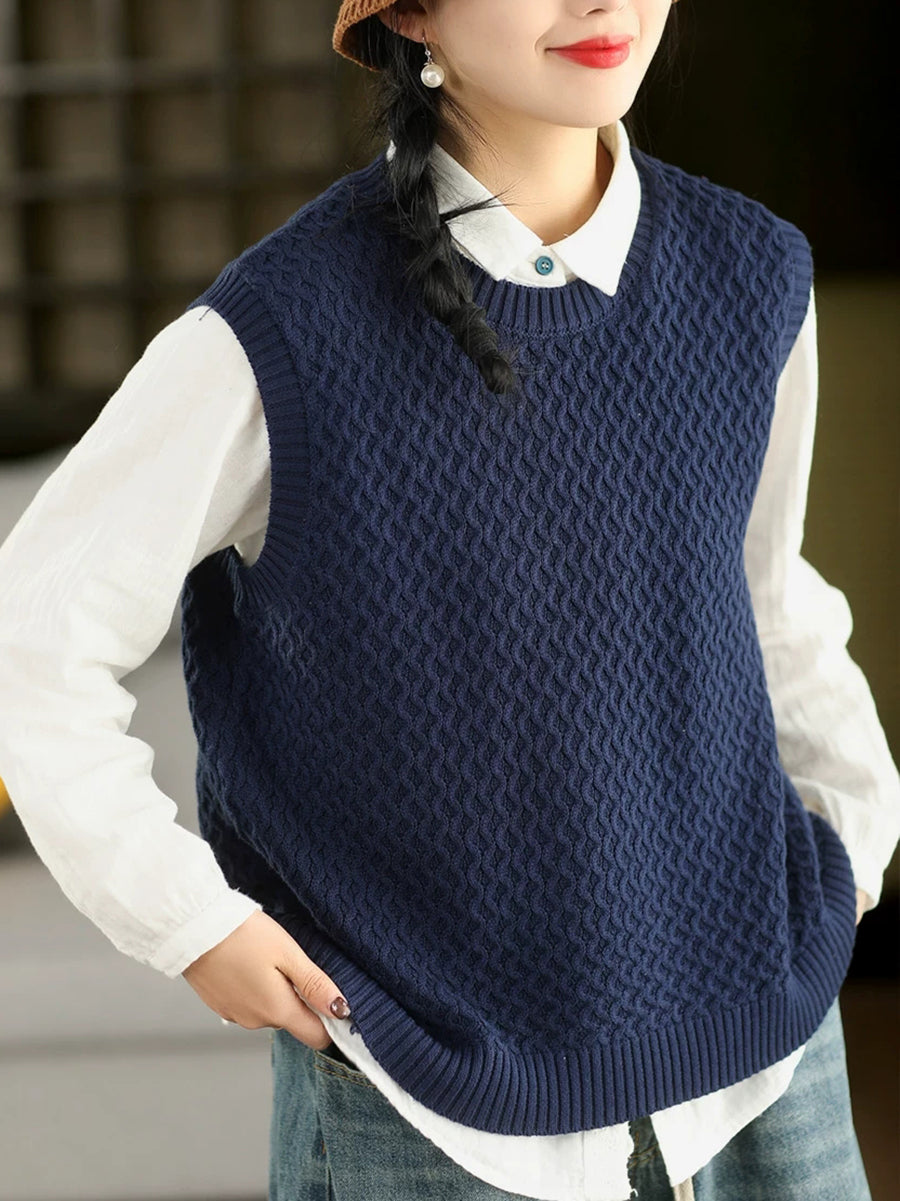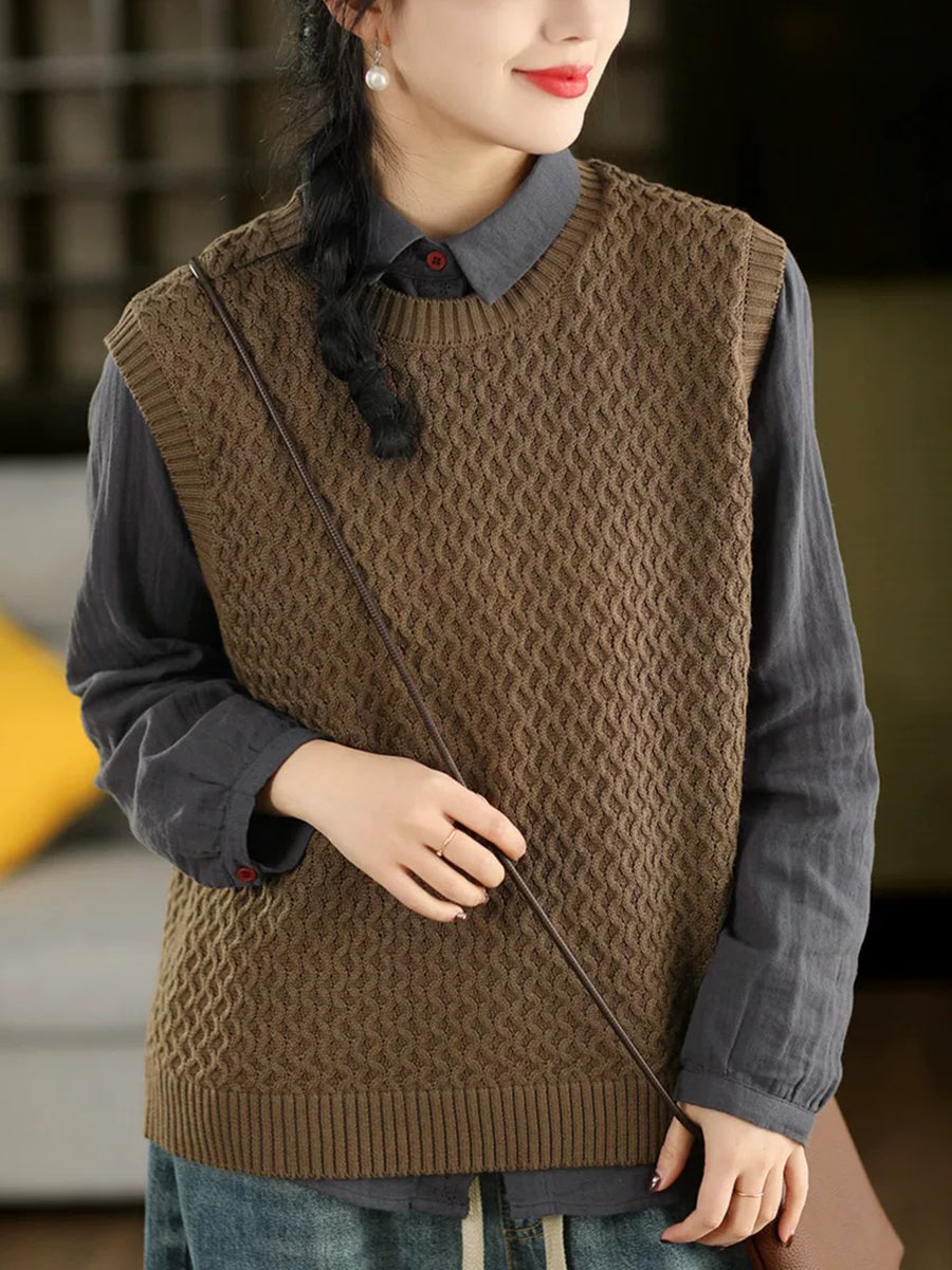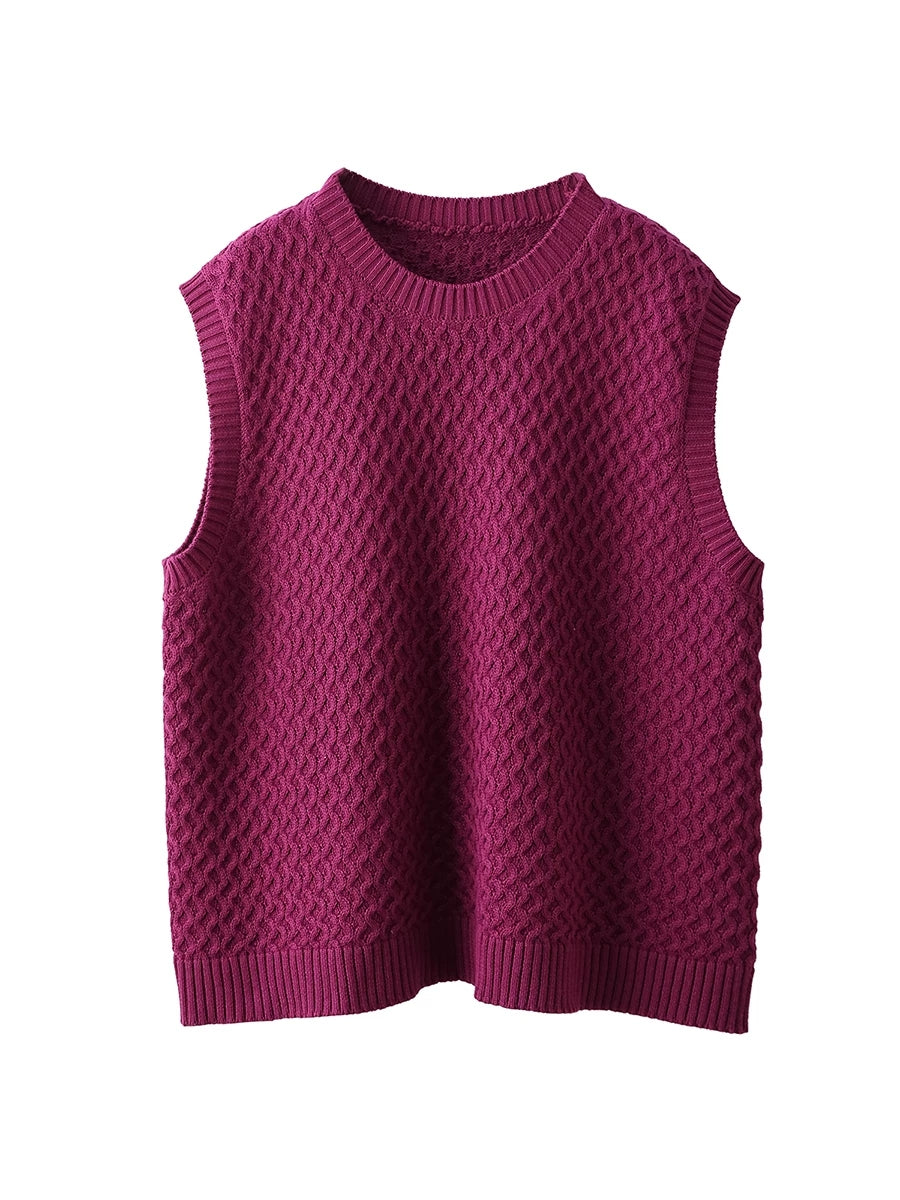 Women Spring Artsy O-Neck Pure Color Knitted Vest
