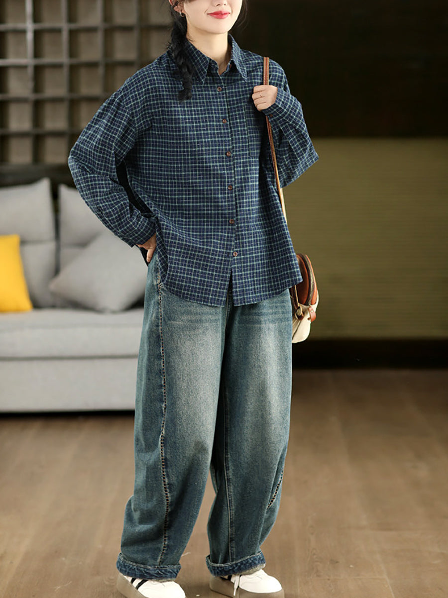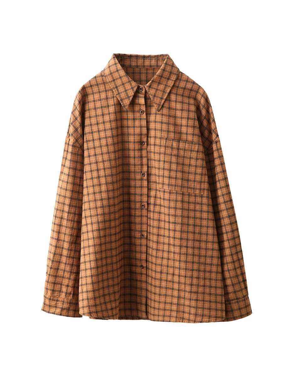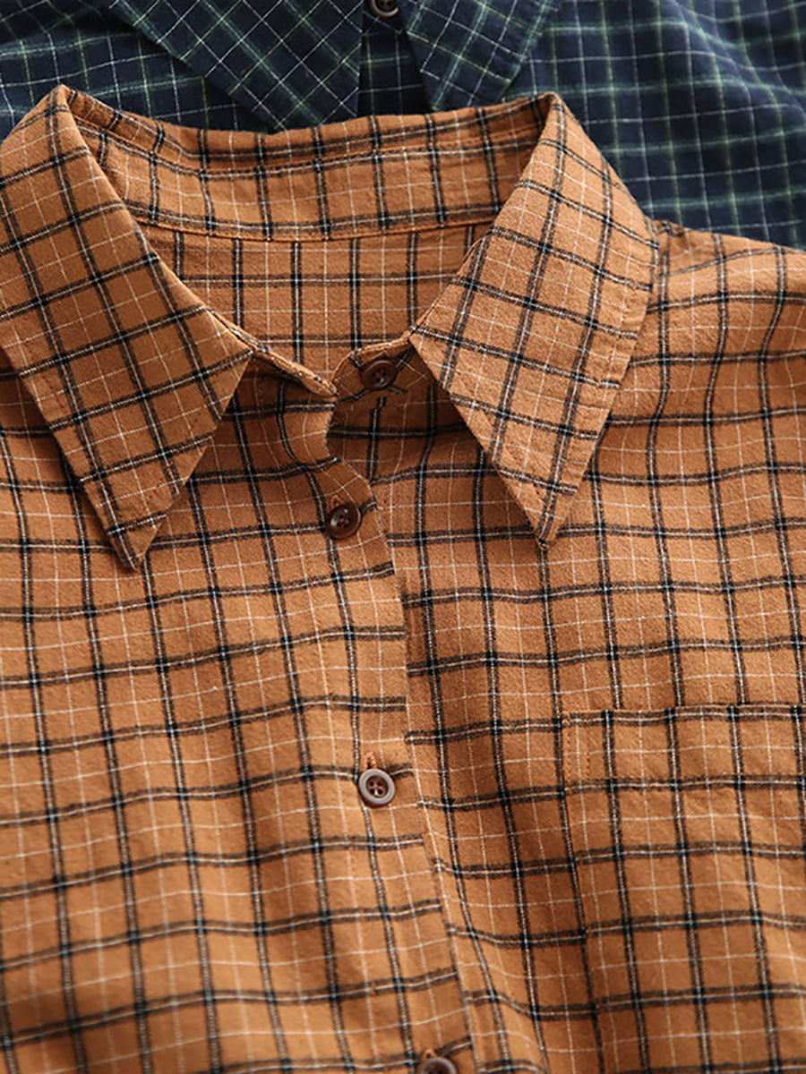 Women Spring Artsy Plaid Cotton Shirt
