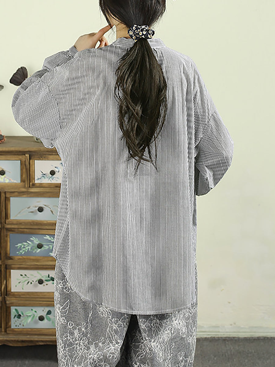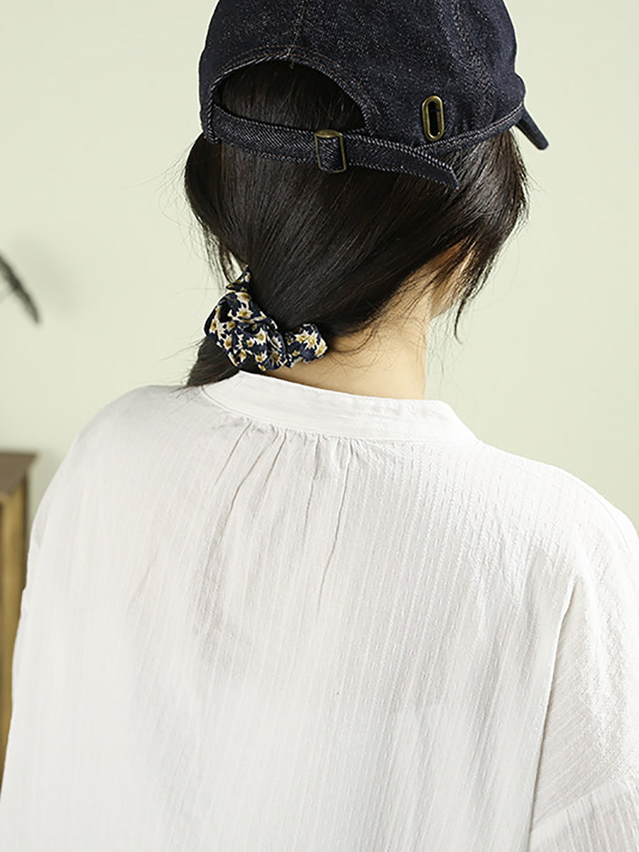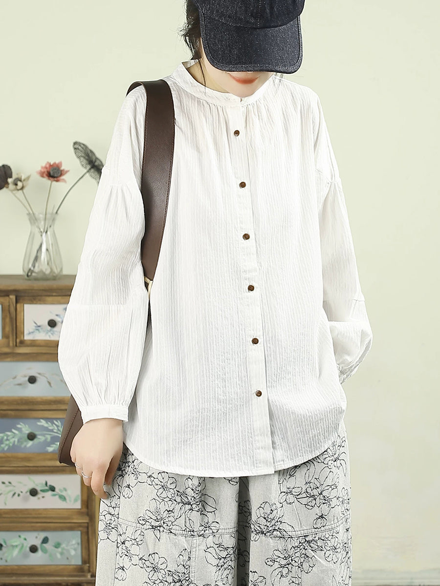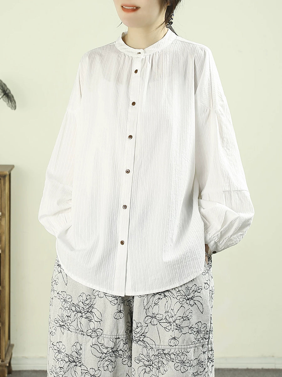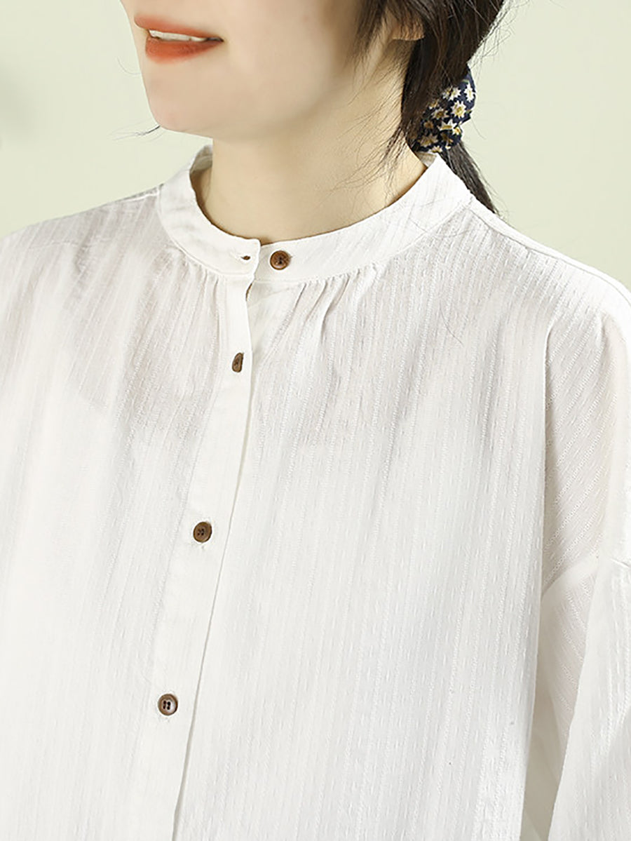 Women Spring Artsy Pure Color 100%Cotton Stand Collar Shirt