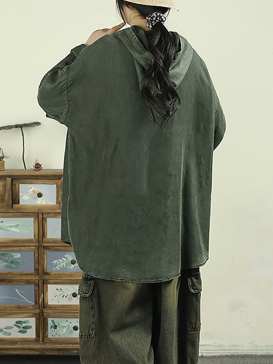 Women Spring Artsy Pure Color 90%Cotton Hoodie