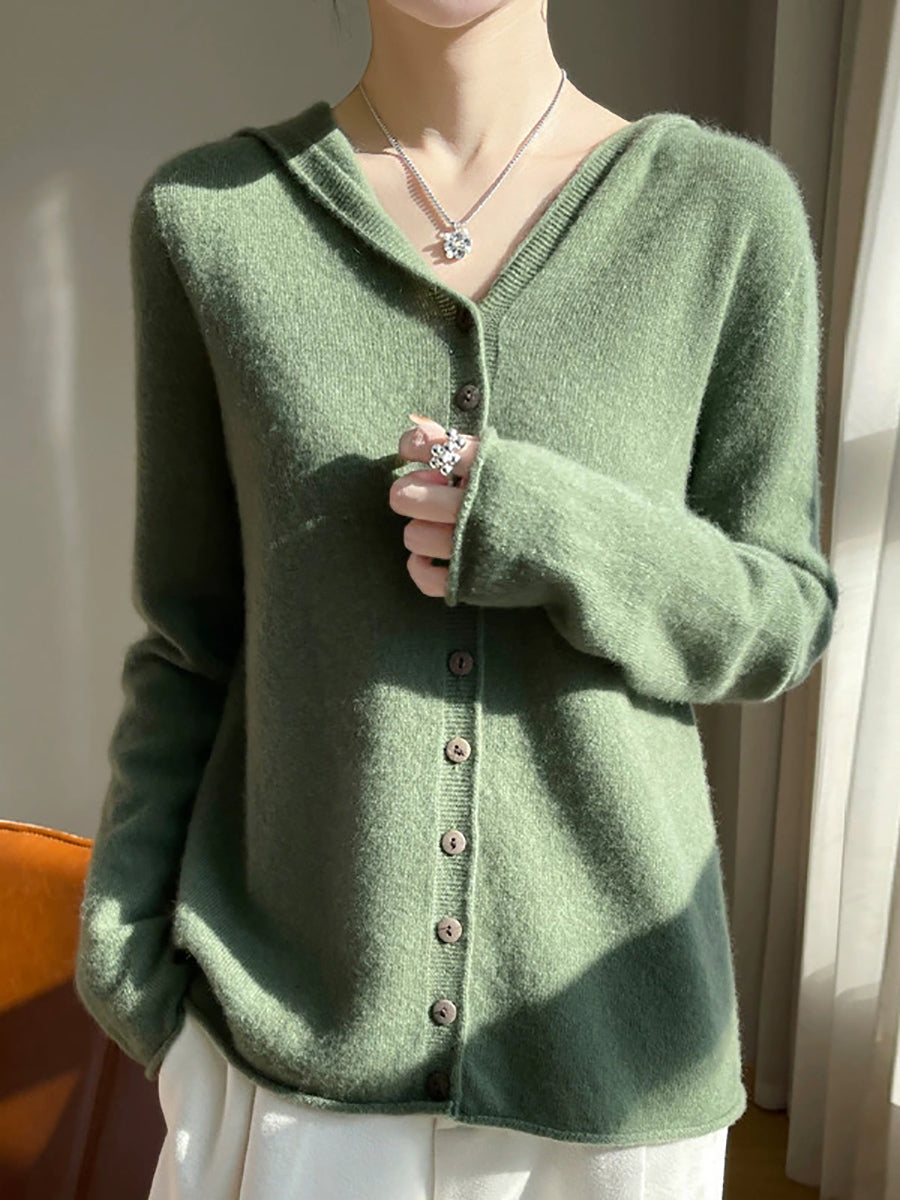 Women Spring Artsy Pure Color Cardigan Hoodie