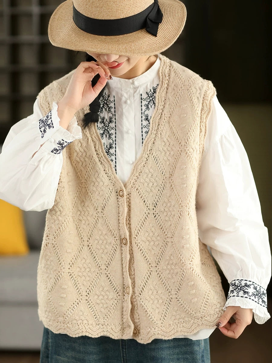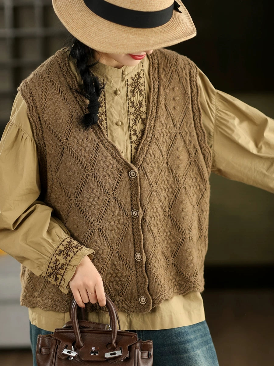 Women Spring Artsy Rhomboids Knitted V-Neck Vest